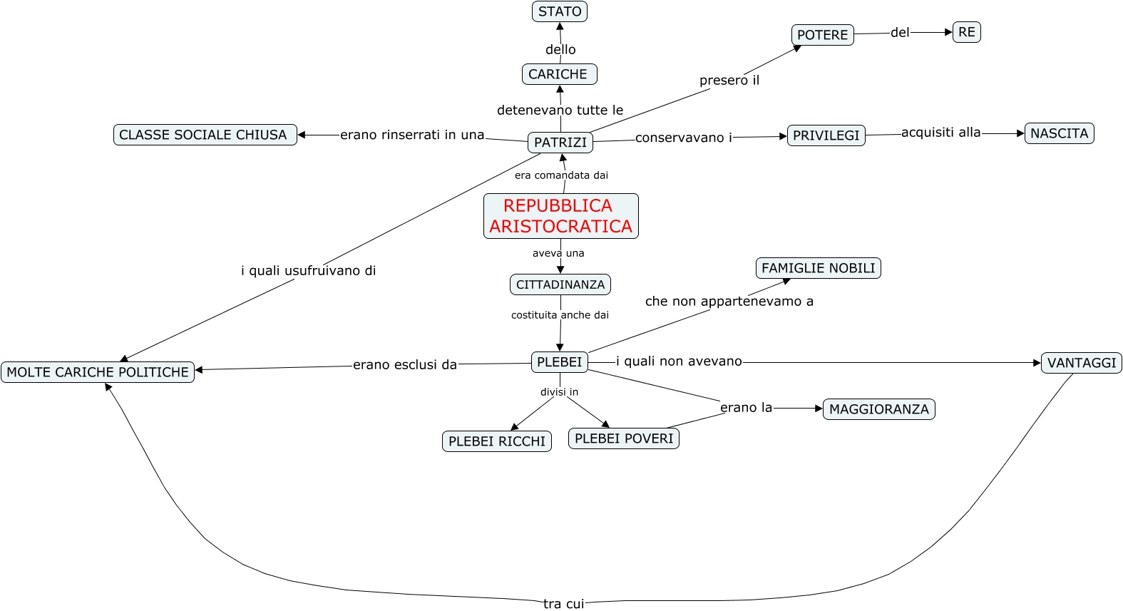 Questa Cmap, creata con IHMC CmapTools, contiene informazioni relative a: DRLF, PLEBEI erano esclusi da MOLTE CARICHE POLITICHE, PRIVILEGI acquisiti alla NASCITA, REPUBBLICA ARISTOCRATICA era comandata dai PATRIZI, PLEBEI erano la MAGGIORANZA, PLEBEI POVERI erano la MAGGIORANZA, PATRIZI presero il POTERE, VANTAGGI tra cui MOLTE CARICHE POLITICHE, CITTADINANZA costituita anche dai PLEBEI, POTERE del RE, REPUBBLICA ARISTOCRATICA aveva una CITTADINANZA, PATRIZI erano rinserrati in una CLASSE SOCIALE CHIUSA, PATRIZI conservavano i PRIVILEGI, PLEBEI che non appartenevamo a FAMIGLIE NOBILI, CARICHE dello STATO, PLEBEI i quali non avevano VANTAGGI, PLEBEI divisi in PLEBEI RICCHI, PATRIZI detenevano tutte le CARICHE, PLEBEI divisi in PLEBEI POVERI, PATRIZI i quali usufruivano di MOLTE CARICHE POLITICHE
