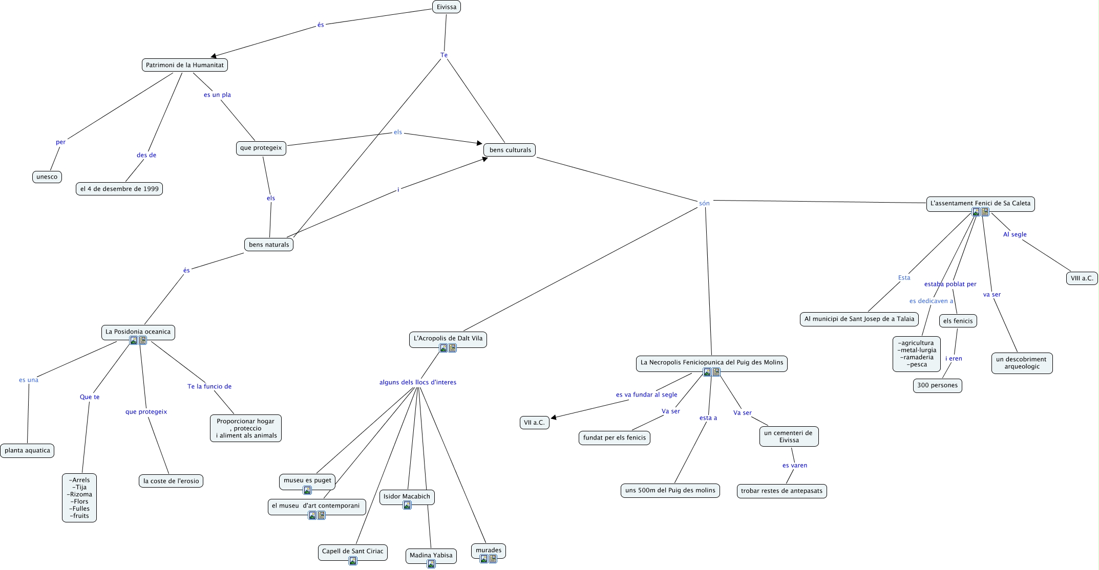 Aquest mapa conceptual conté informació relacionada amb: patrimoni humanitat, La Necropolis Feniciopunica del Puig des Molins es va fundar al segle VII a.C., Eivissa Te bens naturals, Patrimoni de la Humanitat per unesco, L'Acropolis de Dalt Vila alguns dels llocs d'interes el museu d'art contemporani, Patrimoni de la Humanitat es un pla que protegeix, L'Acropolis de Dalt Vila alguns dels llocs d'interes murades, que protegeix els bens naturals, bens culturals són L'Acropolis de Dalt Vila, bens naturals i bens culturals, Eivissa Te bens culturals, que protegeix els bens culturals, Patrimoni de la Humanitat des de el 4 de desembre de 1999, L'assentament Fenici de Sa Caleta Al segle VIII a.C., La Necropolis Feniciopunica del Puig des Molins Va ser un cementeri de Eivissa, Eivissa és Patrimoni de la Humanitat, La Posidonia oceanica Te la funcio de Proporcionar hogar , proteccio i aliment als animals, La Necropolis Feniciopunica del Puig des Molins esta a uns 500m del Puig des molins, un cementeri de Eivissa es varen trobar restes de antepasats, La Posidonia oceanica es una planta aquatica, L'assentament Fenici de Sa Caleta va ser un descobriment arqueologic