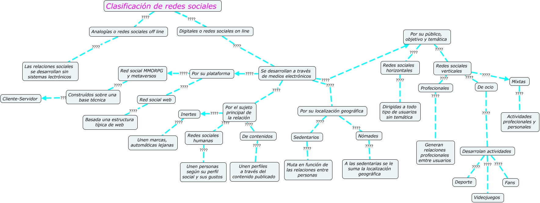 Este Cmap, tiene información relacionada con: oriana red conceptual, Por su plataforma ???? Red social web, Redes sociales humanas ???? Unen personas según su perfil social y sus gustos, Clasificación de redes sociales ???? Digitales o redes sociales on line, Por su localización geográfica ???? Sedentarios, Construídos sobre una base técnica ???? Cliente-Servidor, Se desarrollan a través de medios electrónicos ???? Por su plataforma, Nómades ???? A las sedentarias se le suma la localización geográfica, Desarrolan actividades ???? Fans, Por el sujeto principal de la relación ???? De contenidos, Clasificación de redes sociales ???? Digitales o redes sociales on line, Por el sujeto principal de la relación ???? Inertes, Inertes ???? Unen marcas, automáticas lejanas, Por el sujeto principal de la relación ???? Redes sociales humanas, Clasificación de redes sociales ???? Digitales o redes sociales on line, Clasificación de redes sociales ???? Analogías o redes sociales off line, Clasificación de redes sociales ???? Digitales o redes sociales on line, Redes sociales horizontales ???? Dirigidas a todo tipo de usuarios sin temática, Mixtas ???? Actividades profecionales y personales, Se desarrollan a través de medios electrónicos ???? Por su público, objetivo y temática, Profecionales ???? Generan relaciones profecionales emtre usuarios