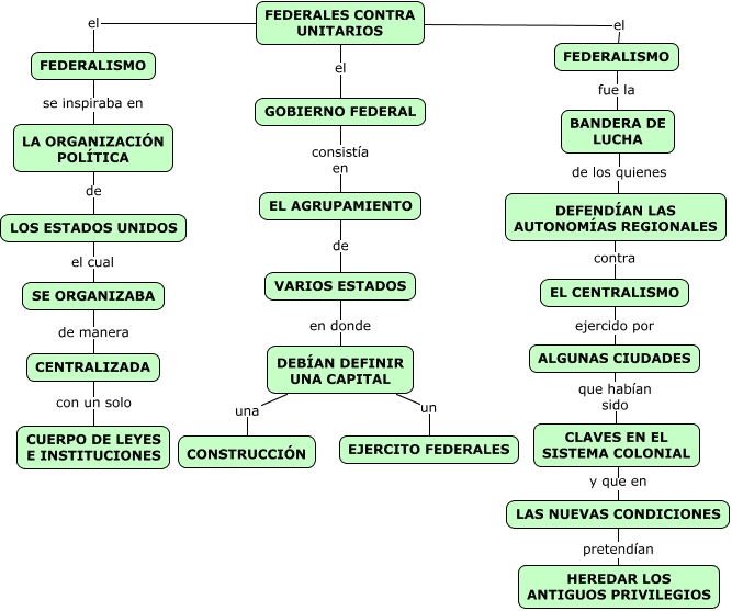 Este Cmap, tiene información relacionada con: federales contra unitarios 2, VARIOS ESTADOS en donde DEBÍAN DEFINIR UNA CAPITAL, FEDERALES CONTRA UNITARIOS el GOBIERNO FEDERAL, GOBIERNO FEDERAL consistía en EL AGRUPAMIENTO, CLAVES EN EL SISTEMA COLONIAL y que en LAS NUEVAS CONDICIONES, ALGUNAS CIUDADES que habían sido CLAVES EN EL SISTEMA COLONIAL, FEDERALES CONTRA UNITARIOS el FEDERALISMO, LA ORGANIZACIÓN POLÍTICA de LOS ESTADOS UNIDOS, EL AGRUPAMIENTO de VARIOS ESTADOS, DEFENDÍAN LAS AUTONOMÍAS REGIONALES contra EL CENTRALISMO, FEDERALISMO se inspiraba en LA ORGANIZACIÓN POLÍTICA, DEBÍAN DEFINIR UNA CAPITAL una CONSTRUCCIÓN, SE ORGANIZABA de manera CENTRALIZADA, LOS ESTADOS UNIDOS el cual SE ORGANIZABA, BANDERA DE LUCHA de los quienes DEFENDÍAN LAS AUTONOMÍAS REGIONALES, DEBÍAN DEFINIR UNA CAPITAL un EJERCITO FEDERALES, LAS NUEVAS CONDICIONES pretendían HEREDAR LOS ANTIGUOS PRIVILEGIOS, CENTRALIZADA con un solo CUERPO DE LEYES E INSTITUCIONES, FEDERALES CONTRA UNITARIOS el FEDERALISMO, EL CENTRALISMO ejercido por ALGUNAS CIUDADES, FEDERALISMO fue la BANDERA DE LUCHA