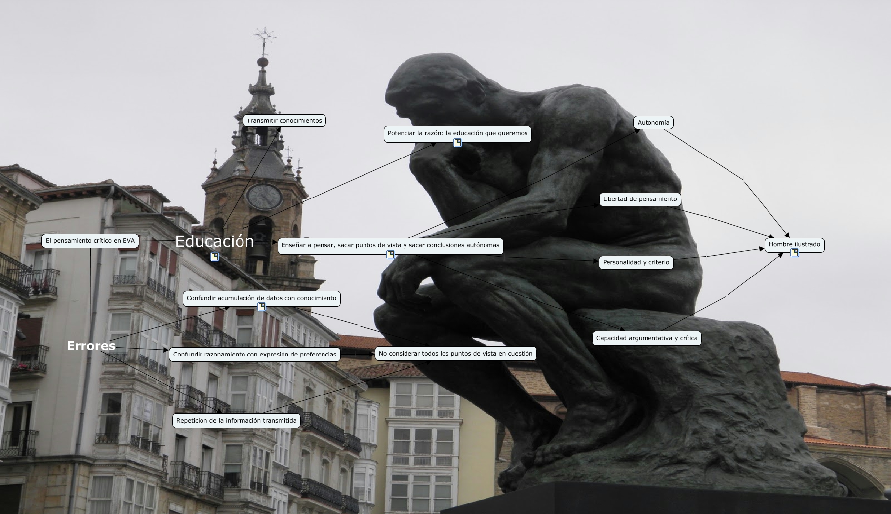 Este Cmap, tiene información relacionada con: Pensamiento crítico en EVA, Confundir razonamiento con expresión de preferencias No considerar todos los puntos de vista en cuestión, El pensamiento crítico en EVA Errores Repetición de la información transmitida, El pensamiento crítico en EVA Educación Enseñar a pensar, sacar puntos de vista y sacar conclusiones autónomas, Capacidad argumentativa y crítica Hombre ilustrado, Enseñar a pensar, sacar puntos de vista y sacar conclusiones autónomas Autonomía, El pensamiento crítico en EVA Errores Confundir razonamiento con expresión de preferencias, Personalidad y criterio Hombre ilustrado, Confundir acumulación de datos con conocimiento No considerar todos los puntos de vista en cuestión, Enseñar a pensar, sacar puntos de vista y sacar conclusiones autónomas Personalidad y criterio, Enseñar a pensar, sacar puntos de vista y sacar conclusiones autónomas Capacidad argumentativa y crítica, Enseñar a pensar, sacar puntos de vista y sacar conclusiones autónomas Libertad de pensamiento, Libertad de pensamiento Hombre ilustrado, El pensamiento crítico en EVA Errores Confundir acumulación de datos con conocimiento, Repetición de la información transmitida No considerar todos los puntos de vista en cuestión, Autonomía Hombre ilustrado, El pensamiento crítico en EVA Educación Transmitir conocimientos, El pensamiento crítico en EVA Educación Potenciar la razón: la educación que queremos