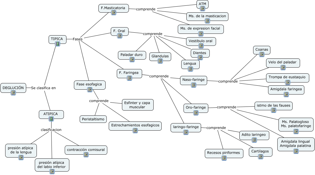Este Cmap, tiene información relacionada con: deglucion, contracción comisural clasificacion presión atípica del labio inferior, Esfinter y capa muscular comprende Peristaltismo, Fase esofagica comprende Peristaltismo, Naso-faringe comprende laringo-faringe, F.Masticatoria Fases Fase esofagica, Ms. Palatogloso Ms. palatofaringe comprende Amigdala lingual Amigdala palatina, Esfinter y capa muscular comprende Estrechamientos esofagicos, istmo de las fauses comprende Amigdala lingual Amigdala palatina, Vestibulo oral comprende Lengua, Dientes comprende Glandulas, F. Oral comprende Paladar duro, F. Oral comprende Glandulas, laringo-faringe comprende Recesos piriformes, TIPICA Fases F. Faringea, TIPICA Fases Fase esofagica, Vestibulo oral comprende Glandulas, F. Oral Fases F. Faringea, contracción comisural clasificacion presión atípica de la lengua, Vestibulo oral comprende Paladar duro, Dientes comprende Lengua