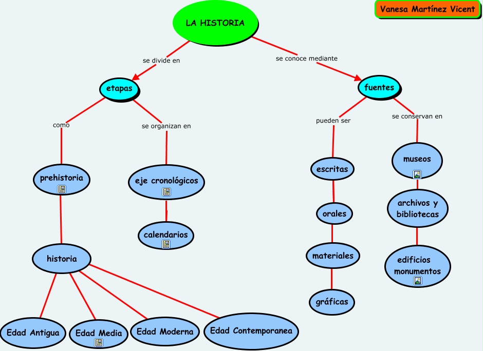 Este Cmap, tiene información relacionada con: LA HISTORIA, LA HISTORIA se conoce mediante fuentes, etapas se organizan en eje cronológicos, fuentes se conservan en museos, historia ???? Edad Moderna, prehistoria ???? historia, escritas ???? orales, orales ???? materiales, escritas ???? orales, escritas ???? orales, eje cronológicos ???? calendarios, historia ???? Edad Media, etapas como prehistoria, eje cronológicos calendarios, LA HISTORIA se divide en etapas, LA HISTORIA ???? Vanesa Martínez Vicent, fuentes pueden ser escritas, museos ???? archivos y bibliotecas, historia ???? Edad Antigua, materiales ???? gráficas, archivos y bibliotecas ???? edificios monumentos
