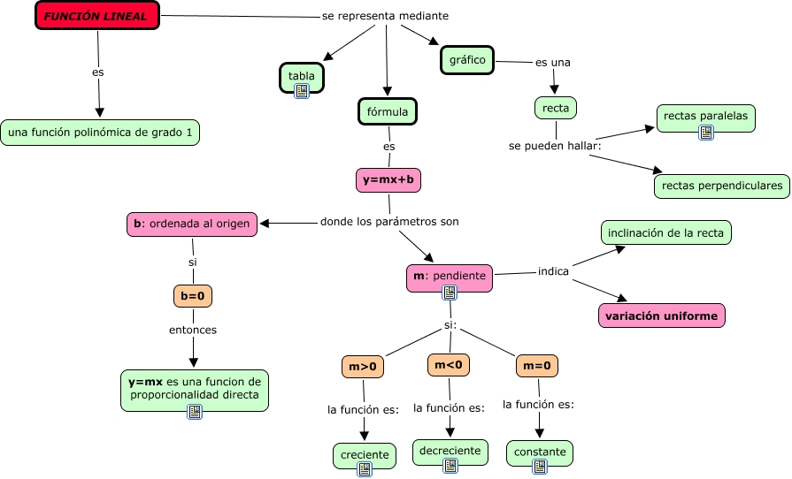 Este Cmap, tiene información relacionada con: Moschen_Jesica, m: pendiente indica inclinación de la recta, m=0 la función es: constante, m: pendiente si: m=0, gráfico es una recta, FUNCIÓN LINEAL se representa mediante gráfico, recta se pueden hallar: rectas perpendiculares, b: ordenada al origen si b=0, FUNCIÓN LINEAL se representa mediante tabla, y=mx+b donde los parámetros son m: pendiente, y=mx+b donde los parámetros son b: ordenada al origen, fórmula es y=mx+b, recta se pueden hallar: rectas paralelas, FUNCIÓN LINEAL es una función polinómica de grado 1, m: pendiente indica variación uniforme, FUNCIÓN LINEAL se representa mediante fórmula, mɬ la función es: creciente, mɘ la función es: decreciente, m: pendiente si: mɬ, m: pendiente si: mɘ, b=0 entonces y=mx es una funcion de proporcionalidad directa
