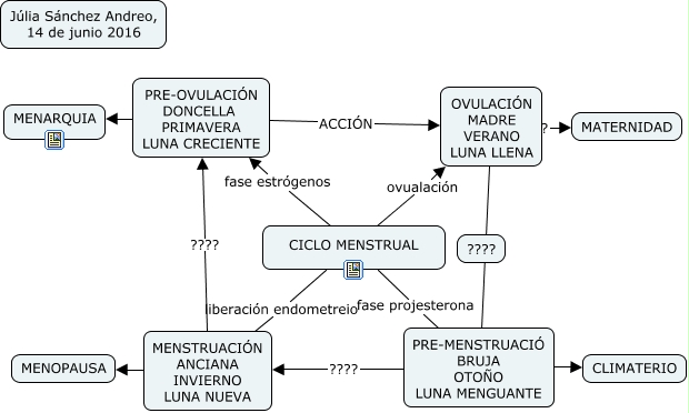 Este Cmap, tiene información relacionada con: EL CICLO MENSTRUAL, CICLO MENSTRUAL fase projesterona PRE-MENSTRUACIÓ BRUJA OTOÑO LUNA MENGUANTE, CICLO MENSTRUAL liberación endometreio MENSTRUACIÓN ANCIANA INVIERNO LUNA NUEVA, OVULACIÓN MADRE VERANO LUNA LLENA PRE-MENSTRUACIÓ BRUJA OTOÑO LUNA MENGUANTE, OVULACIÓN MADRE VERANO LUNA LLENA ???? MATERNIDAD, CICLO MENSTRUAL fase estrógenos PRE-OVULACIÓN DONCELLA PRIMAVERA LUNA CRECIENTE, PRE-MENSTRUACIÓ BRUJA OTOÑO LUNA MENGUANTE ???? MENSTRUACIÓN ANCIANA INVIERNO LUNA NUEVA, MENSTRUACIÓN ANCIANA INVIERNO LUNA NUEVA ???? MENOPAUSA, PRE-OVULACIÓN DONCELLA PRIMAVERA LUNA CRECIENTE ???? MENARQUIA, MENSTRUACIÓN ANCIANA INVIERNO LUNA NUEVA ???? PRE-OVULACIÓN DONCELLA PRIMAVERA LUNA CRECIENTE, PRE-MENSTRUACIÓ BRUJA OTOÑO LUNA MENGUANTE ???? CLIMATERIO, PRE-OVULACIÓN DONCELLA PRIMAVERA LUNA CRECIENTE ACCIÓN OVULACIÓN MADRE VERANO LUNA LLENA, CICLO MENSTRUAL ovualación OVULACIÓN MADRE VERANO LUNA LLENA