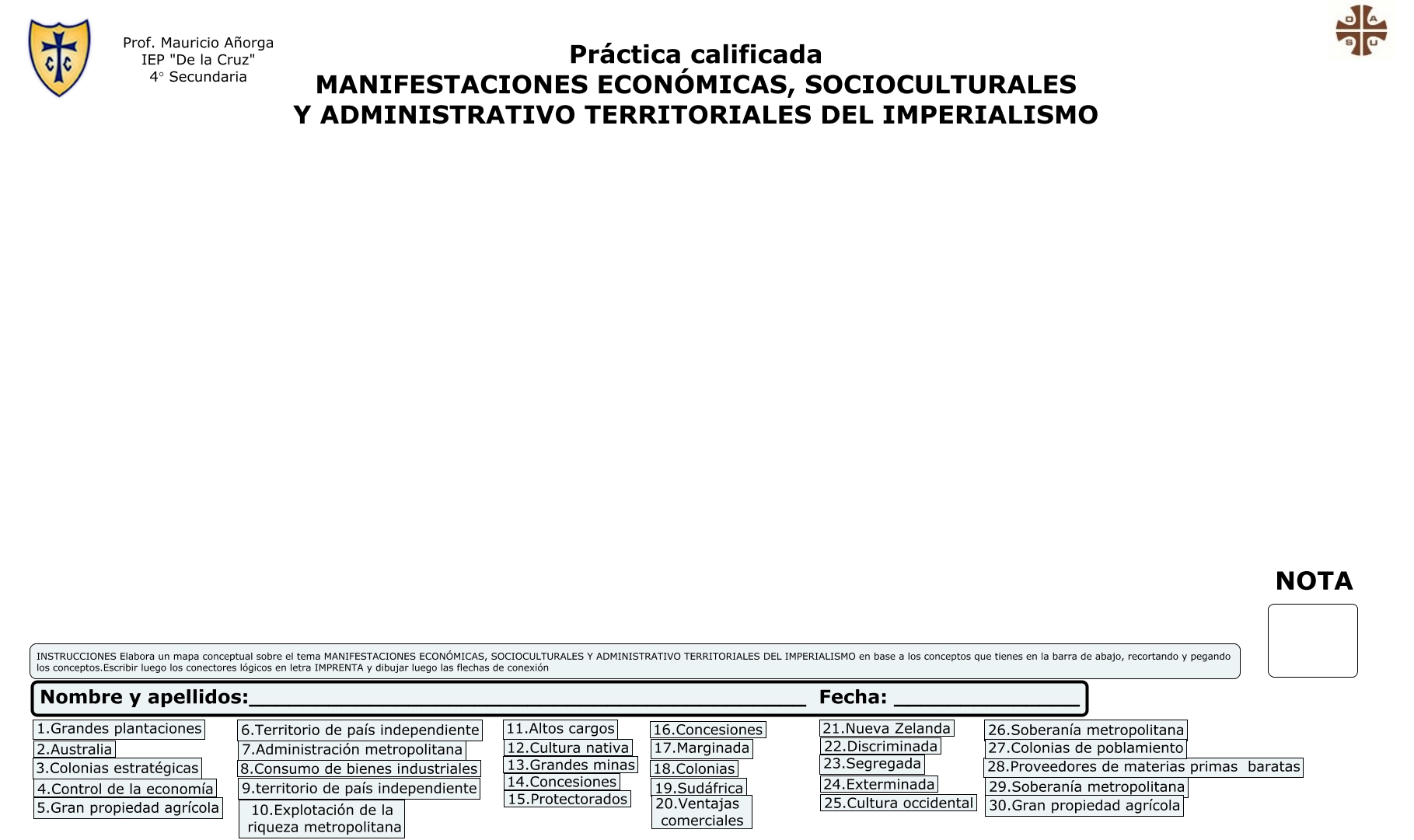Este Cmap, tiene información relacionada con: IMPERIALISMO EN EL MUNDO prueba - B, Industrialización para obligar Consumo de bienes industriales, SEGREGADA de Control de la economía, La población autóctona es MARGINADA, Administración territorial con la creación de Protectorados, Argelia donde La población autóctona, DISCRINADA en Matrimonios interraciales, Economía no fomentan Industrialización, Economía con la explotación de Mano de obra barata, EL IMPERIALISMO EN EL MUNDO se manifiesta en Administración territorial, Colonias de poblamiento en Nueva Zelanda, EL IMPERIALISMO EN EL MUNDO se manifiesta en Economía, Población autóctona es EXTERMINADA, Colonias estratégicas donde La población autóctona, SEGREGADA de Gran propiedad agrícola, Colonias de poblamiento en Argelia, Sudáfrica donde La población autóctona, Colonias de poblamiento en Australia, Administración territorial con la creación de Concesiones, Sociedad y cultura imposición de la Cultura occidental, Nueva Zelanda donde Población autóctona