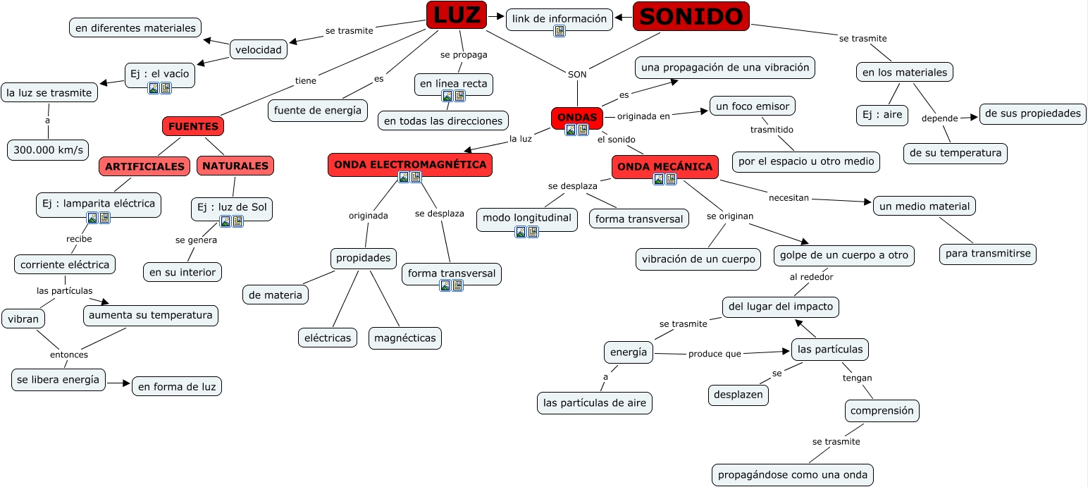Este Cmap, tiene información relacionada con: cmap de luz y sonido, en los materiales Ej : aire, en los materiales depende de su temperatura, corriente eléctrica las partículas aumenta su temperatura, FUENTES NATURALES, Ej : luz de Sol se genera en su interior, velocidad en diferentes materiales, un foco emisor trasmitido por el espacio u otro medio, propidades de materia, comprensión se trasmite propagándose como una onda, se libera energía en forma de luz, ONDA MECÁNICA se desplaza forma transversal, velocidad Ej : el vacío, ONDA ELECTROMAGNÉTICA se desplaza forma transversal, ONDA ELECTROMAGNÉTICA originada propidades, energía produce que las partículas, ONDAS el sonido ONDA MECÁNICA, las partículas se desplazen, vibran entonces se libera energía, corriente eléctrica las partículas vibran, las partículas del lugar del impacto