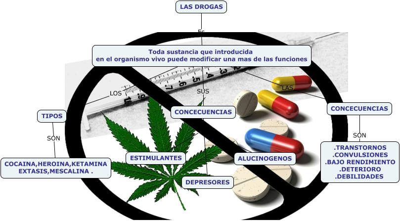 Este Cmap, tiene información relacionada con: 4to C, Toda sustancia que introducida en el organismo vivo puede modificar una mas de las funciones LOS TIPOS, Toda sustancia que introducida en el organismo vivo puede modificar una mas de las funciones SUS CONCECUENCIAS, LAS DROGAS Es Toda sustancia que introducida en el organismo vivo puede modificar una mas de las funciones, CONCECUENCIAS SON .TRANSTORNOS .CONVULSIONES .BAJO RENDIMIENTO .DETERIORO .DEBILIDADES, CONCECUENCIAS ES DEPRESORES, CONCECUENCIAS ES ALUCINOGENOS, CONCECUENCIAS ES ESTIMULANTES, TIPOS SON COCAINA,HEROINA,KETAMINA EXTASIS,MESCALINA ., Toda sustancia que introducida en el organismo vivo puede modificar una mas de las funciones LAS CONCECUENCIAS