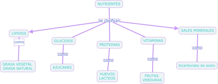 Este Cmap, tiene información relacionada con: valeria, NUTRIENTES se clasifican LIPIDOS, SALES MINERALES como bicarbonato de sodio, GLUCIDOS como AZUCARES, PROTEINAS como HUEVOS LACTEOS, NUTRIENTES se clasifican SALES MINERALES, NUTRIENTES se clasifican VITAMINAS, VITAMINAS como FRUTAS VERDURAS, LIPIDOS como GRASA VEGETAL GRASA NATURAL, NUTRIENTES se clasifican PROTEINAS, NUTRIENTES se clasifican GLUCIDOS