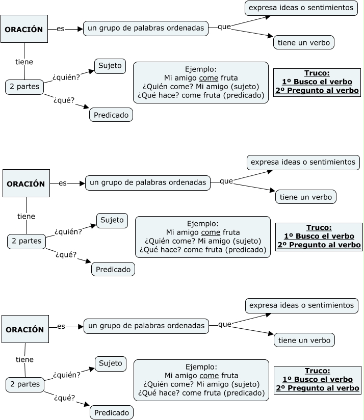Este Cmap, tiene información relacionada con: OracióN, un grupo de palabras ordenadas que tiene un verbo, ORACIÓN es un grupo de palabras ordenadas, un grupo de palabras ordenadas que expresa ideas o sentimientos, ORACIÓN tiene 2 partes, ORACIÓN tiene 2 partes, un grupo de palabras ordenadas que tiene un verbo, un grupo de palabras ordenadas que tiene un verbo, 2 partes ¿qué? Predicado, un grupo de palabras ordenadas que expresa ideas o sentimientos, 2 partes ¿qué? Predicado, 2 partes ¿quién? Sujeto, 2 partes ¿quién? Sujeto, ORACIÓN tiene 2 partes, 2 partes ¿quién? Sujeto, un grupo de palabras ordenadas que expresa ideas o sentimientos, 2 partes ¿qué? Predicado, ORACIÓN es un grupo de palabras ordenadas, ORACIÓN es un grupo de palabras ordenadas