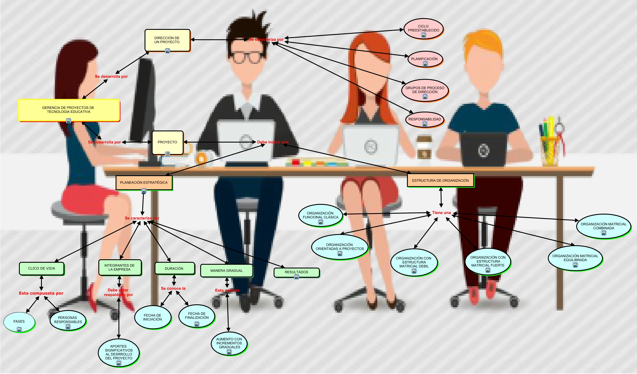 Este Cmap, tiene información relacionada con: GERENCIA DE PROYECTO, CLICO DE VIDA Se caracteriza por INTEGRANTES DE LA EMPRESA, ORGANIZACIÓN FUNCIONAL CLÁSICA Tiene una ORGANIZACIÓN MATRICIAL EQUILIBRADA, INTEGRANTES DE LA EMPRESA Debe estar respaldado por APORTES SIGNIFICATIVOS AL DESRROLLO DEL PROYECTO, ORGANIZACIÓN FUNCIONAL CLÁSICA Tiene una ORGANIZACIÓN CON ESTRUCTURA MATRICIAL DEBIL, ORGANIZACIÓN FUNCIONAL CLÁSICA Tiene una ORGANIZACIÓN CON ESTRUCTURA MATRICIAL FUERTE, CLICO DE VIDA Se caracteriza por RESULTADOS, CLICO DE VIDA Esta compuesta por FASES, DIRECCIÓN DE UN PROYECTO Se caracteriza por RESPONSABILIDAD, DIRECCIÓN DE UN PROYECTO Se caracteriza por CICLO PREESTABLECIDO, PROYECTO Debe incluir una ESTRUCTURA DE ORGANIZACIÓN, CLICO DE VIDA Se caracteriza por PLANEACIÓN ESTRATÉGICA, GERENCIA DE PROYECTOS DE TECNOLOGIA EDUCATIVA Se desarrolla por PROYECTO, ORGANIZACIÓN FUNCIONAL CLÁSICA Tiene una ORGANIZACIÓN ORIENTADAS A PROYECTOS, DURACIÓN Se conoce la FECHA DE INICIACIÓN, ORGANIZACIÓN FUNCIONAL CLÁSICA Tiene una ORGANIZACIÓN MATRICIAL COMBINADA, CLICO DE VIDA Se caracteriza por DURACIÓN, MANERA GRADUAL Esto permite AUMENTO CON INCREMENTOS GRADUALES, DIRECCIÓN DE UN PROYECTO Se caracteriza por GRUPOS DE PROCESO DE DIRECCIÓN, CLICO DE VIDA Esta compuesta por PERSONAS RESPONSABLES, GERENCIA DE PROYECTOS DE TECNOLOGIA EDUCATIVA Se desarrolla por DIRECCIÓN DE UN PROYECTO