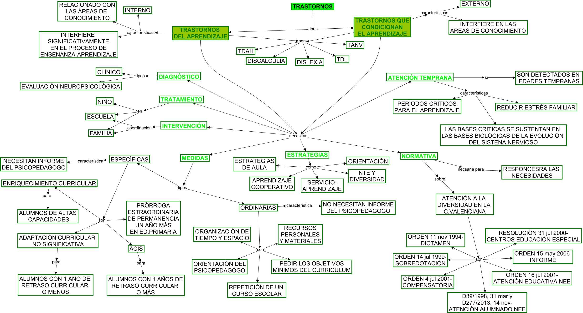Este Cmap, tiene información relacionada con: 702- PEC 1- TEMA 2- SUBMAPA 1, TRASTORNOS QUE CONDICIONAN EL APRENDIZAJE características EXTERNO, ESPECÍFICAS son ACIS, ESTRATEGIAS como NTE Y DIVERSIDAD, ESPECÍFICAS son ENRIQUECIMIENTO CURRICULAR, MEDIDAS tipos ESPECÍFICAS, ATENCIÓN A LA DIVERSIDAD EN LA C.VALENCIANA son D39/1998, 31 mar y D277/2013, 14 nov- ATENCIÓN ALUMNADO NEE, ESPECÍFICAS característica NECESITAN INFORME DEL PSICOPEDAGOGO, ESPECÍFICAS son ADAPTACIÓN CURRICULAR NO SIGNIFICATIVA, TRASTORNOS DEL APRENDIZAJE necesitan ESTRATEGIAS, NORMATIVA necsaria para RESPONCESRA LAS NECESIDADES, TRASTORNOS QUE CONDICIONAN EL APRENDIZAJE son DISCALCULIA, ATENCIÓN TEMPRANA características PERÍODOS CRÍTICOS PARA EL APRENDIZAJE, DIAGNÓSTICO tipos CLÍNICO, TRASTORNOS DEL APRENDIZAJE características INTERNO, TRATAMIENTO en NIÑO, TRASTORNOS QUE CONDICIONAN EL APRENDIZAJE necesitan MEDIDAS, ESPECÍFICAS son PRÓRROGA ESTRAORDINARIA DE PERMANENCIA UN AÑO MÁS EN ED.PRIMARIA, INTERVENCIÓN coordinación ESCUELA, ATENCIÓN TEMPRANA características REDUCIR ESTRÉS FAMILIAR, TRATAMIENTO en ESCUELA