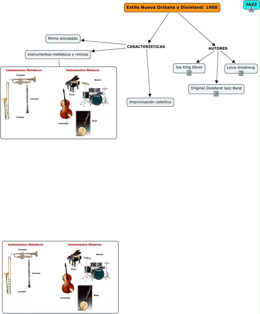 Este Cmap, tiene información relacionada con: jazz_Orleans, Estilo Nueva Orléans y Dixieland: 1900 AUTORES Original Dixieland Jazz Band, Estilo Nueva Orléans y Dixieland: 1900 AUTORES Loius Amstrong, Instrumentos melódicos y rimicos ????, Estilo Nueva Orléans y Dixieland: 1900 CARACTERÍSTICAS Improvisación colectiva, Estilo Nueva Orléans y Dixieland: 1900 CARACTERÍSTICAS Instrumentos melódicos y rimicos, Estilo Nueva Orléans y Dixieland: 1900 AUTORES Joe King Oliver, Estilo Nueva Orléans y Dixieland: 1900 CARACTERÍSTICAS Ritmo sincopado