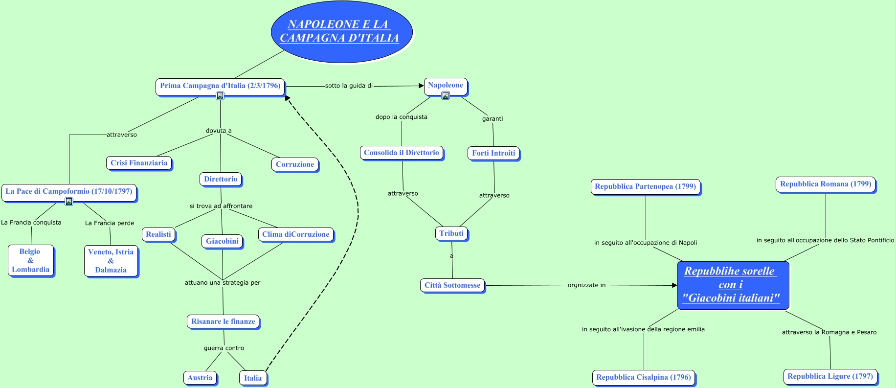 Questa Cmap, creata con IHMC CmapTools, contiene informazioni relative a: Cmap Napoleone e la Campagna d'Italia, Direttorio si trova ad affrontare Clima diCorruzione, Realisti attuano una strategia per Risanare le finanze, Prima Campagna d'Italia (2/3/1796) dovuta a Crisi Finanziaria, Repubblihe sorelle con i "Giacobini italiani" attraverso la Romagna e Pesaro Repubblica Ligure (1797), Prima Campagna d'Italia (2/3/1796) dovuta a Direttorio, Giacobini attuano una strategia per Risanare le finanze, Napoleone dopo la conquista Consolida il Direttorio, Repubblihe sorelle con i "Giacobini italiani" in seguito all'ivasione della regione emilia Repubblica Cisalpina (1796), NAPOLEONE E LA CAMPAGNA D'ITALIA ???? Prima Campagna d'Italia (2/3/1796), Tributi a Città Sottomesse, Repubblihe sorelle con i "Giacobini italiani" in seguito all'occupazione dello Stato Pontificio Repubblica Romana (1799), Risanare le finanze guerra contro Austria, Italia ???? Prima Campagna d'Italia (2/3/1796), La Pace di Campoformio (17/10/1797) La Francia conquista Belgio & Lombardia, Prima Campagna d'Italia (2/3/1796) attraverso La Pace di Campoformio (17/10/1797), Prima Campagna d'Italia (2/3/1796) dovuta a Corruzione, Repubblihe sorelle con i "Giacobini italiani" in seguito all'occupazione di Napoli Repubblica Partenopea (1799), Forti Introiti attraverso Tributi, Città Sottomesse orgnizzate in Repubblihe sorelle con i "Giacobini italiani", Napoleone garantì Forti Introiti