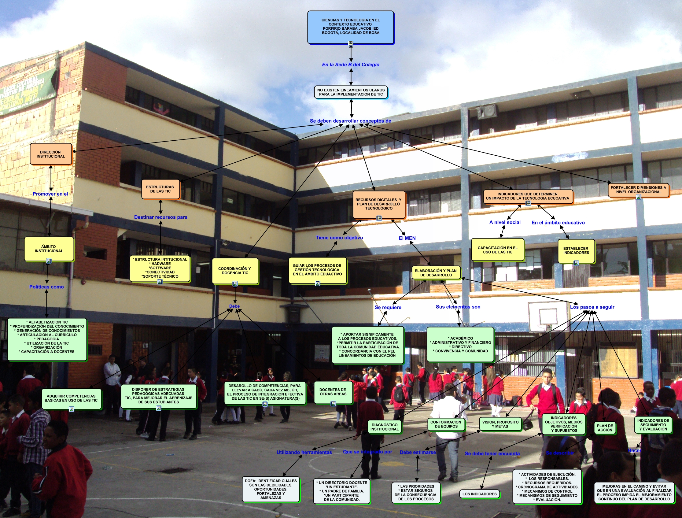 Este Cmap, tiene información relacionada con: TECNOLOGIA EDUCATIVA, PLAN DE ACCIÓN Se describir * ACTIVIDADES DE EJECUCIÓN. * LOS RESPONSABLES. * RECURSOS REQUERIDOS. * CRONOGRAMA DE ACTIVIDADES. * MECANIMOS DE CONTROL * MECANISMOS DE SEGUIMIENTO * EVALUACIÓN., NO EXISTEN LINEAMIENTOS CLAROS PARA LA IMPLEMENTACION DE TIC Se deben desarrollar conceptos de RECURSOS DIGITALES Y PLAN DE DESARROLLO TECNOLÓGICO, COORDINACIÓN Y DOCENCIA TIC Debe ADQUIRIR COMPETENCIAS BASICAS EN USO DE LAS TIC, ELABORACIÓN Y PLAN DE DESARROLLO Los pasos a seguir VISIÓN, PROPOSITO Y METAS, ELABORACIÓN Y PLAN DE DESARROLLO Sus elementos son * ACADÉMICO * ADMINISTRATIVO Y FINANCIERO * DIRECTIVO * CONVIVENCIA Y COMUNIDAD, ELABORACIÓN Y PLAN DE DESARROLLO Los pasos a seguir DIAGNÓSTICO INSTITUCIONAL, CONFORMACION DE EQUIPOS Que se integrado por * UN DIRECTORIO DOCENTE *UN ESTUDIANTE. * UN PADRE DE FAMILIA. *UN PARTICIPANTE DE LA COMUNIDAD., NO EXISTEN LINEAMIENTOS CLAROS PARA LA IMPLEMENTACION DE TIC Se deben desarrollar conceptos de ESTRUCTURAS DE LAS TIC, COORDINACIÓN Y DOCENCIA TIC Debe DESAROLLO DE COMPETENCIAS, PARA LLEVAR A CABO, CADA VEZ MEJOR, EL PROCESO DE INTEGRACIÓN EFECTIVA DE LAS TIC EN SU(S) ASIGNATURA(S), NO EXISTEN LINEAMIENTOS CLAROS PARA LA IMPLEMENTACION DE TIC Se deben desarrollar conceptos de DIRECCIÓN INSTITUCIONAL, ESTRUCTURAS DE LAS TIC Destinar recursos para * ESTRUCTURA INTITUCIONAL * HADWARE *SOTFWARE *CONECTIVIDAD *SOPORTE TÉCNICO, VISIÓN, PROPOSITO Y METAS Debe estimarse * LAS PRIORIDADES * ESTAR SEGUROS DE LA CONSECUENCIA DE LOS PROCESOS, DIRECCIÓN INSTITUCIONAL Promover en el ÁMBITO INSTITUCIONAL, ELABORACIÓN Y PLAN DE DESARROLLO Los pasos a seguir INDICADORES OBJETIVOS, MEDIOS VERIFICACIÓN Y SUPUESTOS, NO EXISTEN LINEAMIENTOS CLAROS PARA LA IMPLEMENTACION DE TIC Se deben desarrollar conceptos de COORDINACIÓN Y DOCENCIA TIC, COORDINACIÓN Y DOCENCIA TIC Debe DOCENTES DE OTRAS ÁREAS, DIAGNÓSTICO INSTITUCIONAL Utilizando herramientas DOFA: IDENTIFICAR CUALES SON LAS DEBILIDADES, OPORTUNIDADES, FORTALEZAS Y AMENAZAS, INDICADORES QUE DETERMINEN UN IMPACTO DE LA TECNOLOGIA ECUCATIVA A nivel social CAPACITACIÓN EN EL USO DE LAS TIC, RECURSOS DIGITALES Y PLAN DE DESARROLLO TECNOLÓGICO Tiene como objetivo GUIAR LOS PROCESOS DE GESTIÓN TECNOLÓGICA EN EL ÁMBITO EDUACTIVO, COORDINACIÓN Y DOCENCIA TIC Debe DISPONER DE ESTRATEGIAS PEDAGÓGICAS ADECUADAS TIC, PARA MEJORAR EL APRENIZAJE DE SUS ESTUDIANTES