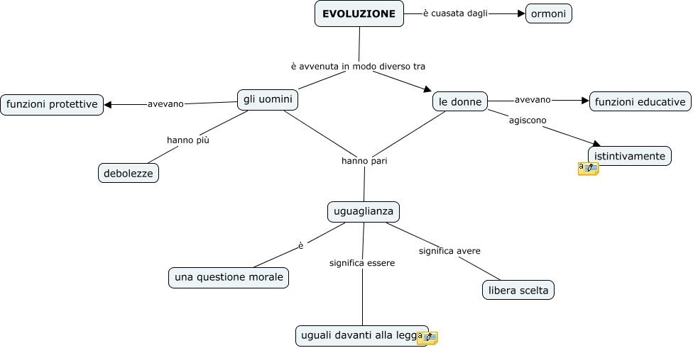 Questa Cmap, creata con IHMC CmapTools, contiene informazioni relative a: Giada Di Chiara, EVOLUZIONE è avvenuta in modo diverso tra le donne, uguaglianza significa essere uguali davanti alla legge, gli uomini hanno più debolezze, EVOLUZIONE è avvenuta in modo diverso tra gli uomini, gli uomini hanno pari uguaglianza, EVOLUZIONE è cuasata dagli ormoni, uguaglianza significa avere libera scelta, le donne hanno pari uguaglianza, gli uomini avevano funzioni protettive, le donne avevano funzioni educative, uguaglianza è una questione morale, le donne agiscono istintivamente