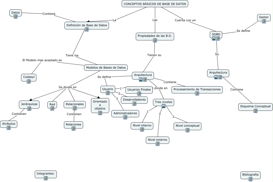 This Concept Map, created with IHMC CmapTools, has information related to: BaseDeDatos, Modelos de Bases de Datos Se divide en Orientado a objetos, Tres niveles 2 Nivel conceptual, Propiedades de las B.D. Tienen su Arquitectura, Tres niveles 1 Nivel interno, Usuario 2 Desarrolladores, Relacionales Contienen Relaciones, CONCEPTOS BÁSICOS DE BASE DE DATOS La Definición de Base de Datos, Definición de Base de Datos Tiene los Modelos de Bases de Datos, CONCEPTOS BÁSICOS DE BASE DE DATOS Las Propiedades de las B.D., Usuario 3 Administradores, Arquitectura Contiene Esquema Conceptual, Modelos de Bases de Datos Se divide en Relacionales, Arquitectura Se divide en Tres niveles, Arquitectura Se define Usuario, CONCEPTOS BÁSICOS DE BASE DE DATOS Cuenta con un SGBD, Modelos de Bases de Datos Se divide en Jerárquicas, Modelos de Bases de Datos Se divide en Red, SGBD Su Arquitectura, SGBD Se define Gestor, Arquitectura Contiene Procesamiento de Transacciones