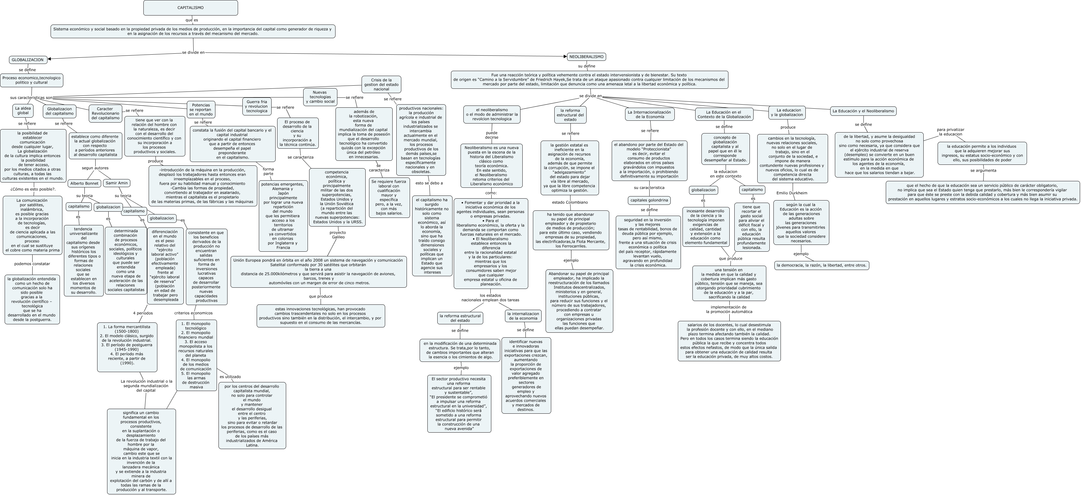 Este Cmap, tiene información relacionada con: neoliberalismo y capitalismo, de la libertad, y asume la desigualdad no solo como provechosa sino como necesaria, ya que considera que el ejército industrial de reserva (desempleo) se convierte en un buen estímulo para la acción económica de los agentes de la economía, en la medida en que hace que los salarios tiendan a bajar. para privatizar la educacion la educación permite a los individuos que la adquieren mejorar sus ingresos, su estatus socio-económico y con ello, sus posibilidades de poder, El proceso de desarrollo de la ciencia y su incorporación a la técnica continúa. se caracteriza competencia económica, política y principalmente militar de las dos superpotencias, Estados Unidos y la Unión Soviética (a repartición del mundo entre las nuevas superpotencias: Estados Unidos y la URSS., Fue una reacción teórica y política vehemente contra el estado intervensionista y de bienestar. Su texto de origen es “Camino a la Servidumbre” de Friedrich Hayek,Se trata de un ataque apasionado contra cualquier limitación de los mecanismos del mercado por parte del estado, limitación que denuncia como una amenaza letal a la libertad económica y política. se divide en la reforma estructural del estado, globalizacion es determinada combinación de procesos económicos, sociales, políticos ideológicos y culturales que puede ser entendida como una nueva etapa de aceleración de las relaciones sociales capitalistas, competencia económica, política y principalmente militar de las dos superpotencias, Estados Unidos y la Unión Soviética (a repartición del mundo entre las nuevas superpotencias: Estados Unidos y la URSS. proyecto Galileo Unión Europea pondrá en órbita en el año 2008 un sistema de navegación y comunicación Satelital conformado por 30 satélites que orbitarán la tierra a una distancia de 25.000kilómetros y que servirá para asistir la navegación de aviones, barcos, trenes y automóviles con un margen de error de cinco metros., capitalismo es tiene que recortar el gasto social para aliviar el déficit fiscal y con ello, la educación pública resulta profundamente lesionada., según la cual la Educación es la acción de las generaciones adultas sobre las generaciones jóvenes para transmitirles aquellos valores que la sociedad considere necesarios. ejemplo la democracia, la razón, la libertad, entre otros., Sistema económico y social basado en la propiedad privada de los medios de producción, en la importancia del capital como generador de riqueza y en la asignación de los recursos a través del mecanismo del mercado. se divide en NEOLIBERALISMO, Proceso economico,tecnologico politico y cultural sus caracteristicas son Potencias se reportan en el mundo, establece como diferente la actual globalización con respecto a períodos anteriores al desarrollo capitalista segun autores Samir Amin, La Educación en el Contexto de la Globalización se define concepto de globalización capitalista y al papel que en él le corresponde desempeñar al Estado., La educacion y la globalizacion produce cambios en la tecnología, nuevas relaciones sociales, no solo en el lugar de trabajo, sino en el conjunto de la sociedad, e impone de manera contundente nuevas profesiones y nuevos oficios, lo cual es de competencia directa del sistema educativo., Fue una reacción teórica y política vehemente contra el estado intervensionista y de bienestar. Su texto de origen es “Camino a la Servidumbre” de Friedrich Hayek,Se trata de un ataque apasionado contra cualquier limitación de los mecanismos del mercado por parte del estado, limitación que denuncia como una amenaza letal a la libertad económica y política. se divide en La Educación y el Neoliberalismo, Sistema económico y social basado en la propiedad privada de los medios de producción, en la importancia del capital como generador de riqueza y en la asignación de los recursos a través del mecanismo del mercado. se divide en GLOBALIZACION, 1. El monopolio tecnológico 2. El monopolio financiero mundial 3. El acceso monopolista a los recursos naturales del planeta 4. El monopolio de los medios de comunicación 5. El monopolio las armas de destrucción masiva es utilizado por los centros del desarrollo capitalista mundial, no solo para controlar el mundo y mantener el desarrollo desigual entre el centro y las periferias, sino para evitar o retardar los procesos de desarrollo de las periferias, como es el caso de los países más industrializados de América Latina., concepto de globalización capitalista y al papel que en él le corresponde desempeñar al Estado. la educacion en este contexto capitalismo, Unión Europea pondrá en órbita en el año 2008 un sistema de navegación y comunicación Satelital conformado por 30 satélites que orbitarán la tierra a una distancia de 25.000kilómetros y que servirá para asistir la navegación de aviones, barcos, trenes y automóviles con un margen de error de cinco metros. que produce estas innovaciones tecnológicas, han provocado cambios trascendentales no solo en los procesos productivos sino también en la distribución, el intercambio, y por supuesto en el consumo de las mercancías., productivos nacionales: la producción agrícola e industrial de los países industrializados se intercambia actualmente en el mercado mundial, los procesos productivos de los demás países,se basan en tecnologías específicamente nacionales y en obsoletas. esto se debo a el capitalismo ha surgido históricamente no solo como sistema económico, así lo aborda la economía, sino que ha traído consigo dimensiones sociales y políticas que implican un Estado que agencie sus intereses, Alberto Bonnet su teoria capitalismo, 1. El monopolio tecnológico 2. El monopolio financiero mundial 3. El acceso monopolista a los recursos naturales del planeta 4. El monopolio de los medios de comunicación 5. El monopolio las armas de destrucción 
