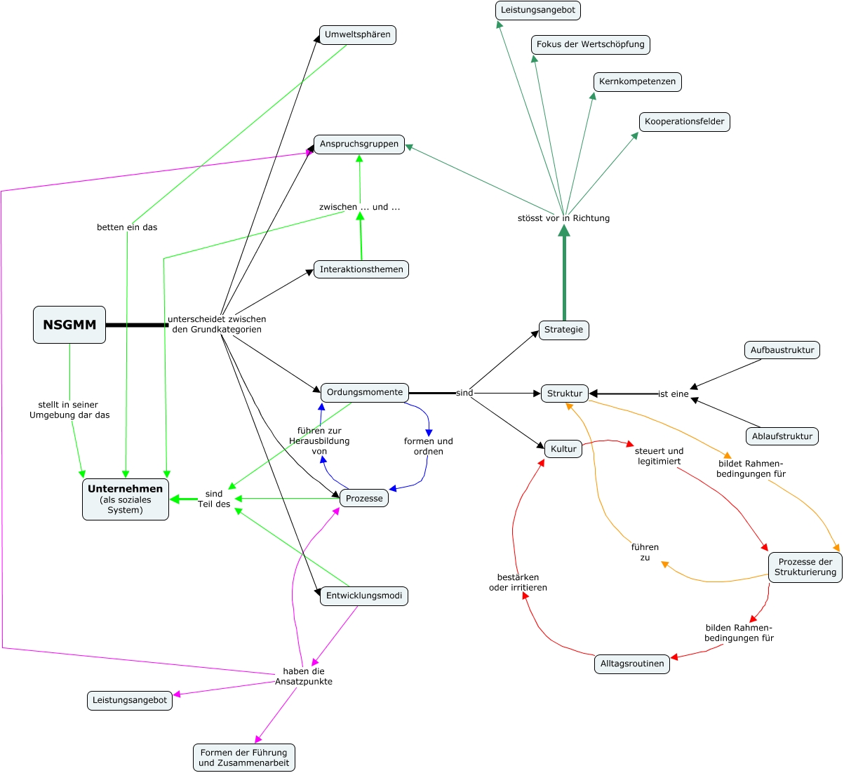 Dieses mit IHMC CmapTools erstellte CMap hat Informationen bezüglich: Rüegg-Stürm2005[2003]_a3, Struktur bildet Rahmen- bedingungen für Prozesse der Strukturierung, Prozesse führen zur Herausbildung von Ordungsmomente, Entwicklungsmodi haben die Ansatzpunkte Prozesse, Entwicklungsmodi sind Teil des Unternehmen (als soziales System), Ablaufstruktur ist eine Struktur, Strategie stösst vor in Richtung Anspruchsgruppen, Kultur steuert und legitimiert Prozesse der Strukturierung, Entwicklungsmodi haben die Ansatzpunkte Formen der Führung und Zusammenarbeit, Ordungsmomente sind Teil des Unternehmen (als soziales System), NSGMM unterscheidet zwischen den Grundkategorien Umweltsphären, Alltagsroutinen bestärken oder irritieren Kultur, NSGMM unterscheidet zwischen den Grundkategorien Entwicklungsmodi, NSGMM unterscheidet zwischen den Grundkategorien Prozesse, Interaktionsthemen zwischen ... und ... Unternehmen (als soziales System), NSGMM unterscheidet zwischen den Grundkategorien Interaktionsthemen, NSGMM unterscheidet zwischen den Grundkategorien Anspruchsgruppen, Ordungsmomente sind Kultur, Entwicklungsmodi haben die Ansatzpunkte Anspruchsgruppen, Aufbaustruktur ist eine Struktur, Prozesse der Strukturierung bilden Rahmen- bedingungen für Alltagsroutinen