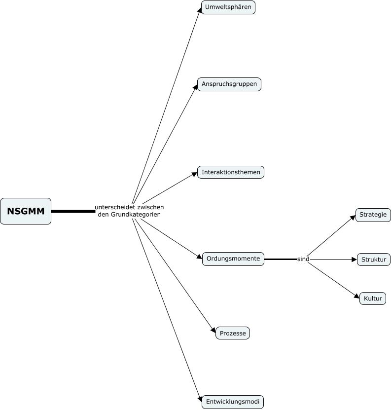 Dieses mit IHMC CmapTools erstellte CMap hat Informationen bezüglich: Rüegg-Stürm2005[2003]_a1, NSGMM unterscheidet zwischen den Grundkategorien Entwicklungsmodi, Ordungsmomente sind Strategie, NSGMM unterscheidet zwischen den Grundkategorien Interaktionsthemen, NSGMM unterscheidet zwischen den Grundkategorien Umweltsphären, Ordungsmomente sind Struktur, NSGMM unterscheidet zwischen den Grundkategorien Anspruchsgruppen, NSGMM unterscheidet zwischen den Grundkategorien Ordungsmomente, NSGMM unterscheidet zwischen den Grundkategorien Prozesse, Ordungsmomente sind Kultur