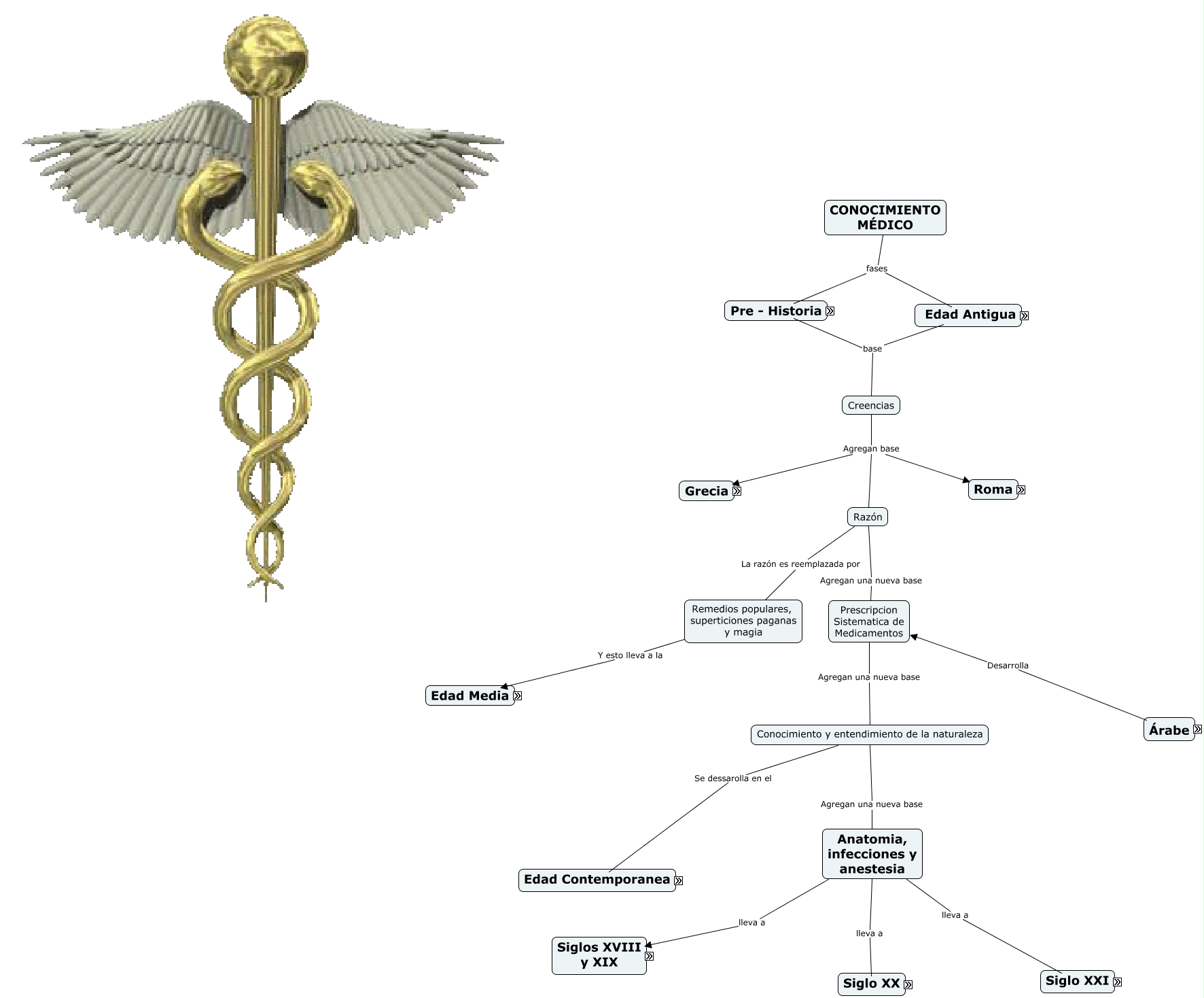 Este Cmap, tiene información relacionada con: Medicina Historia, Siglo XX Representantes Christiaan Barnard, Prescripcion Sistematica de Medicamentos Agregan una nueva base Conocimiento y entendimiento de la naturaleza, Roma Manifestaciones Humores, Edad Media Manifestaciones Amuletos contra la Peste, Siglo XXI Manifestaciones Celulas Madres, Antigua base Creencias, Grecia Manifestaciones Dios Asclepio, CONOCIMIENTO MÉDICO fases Pre-Historicos, Remedios populares, superticiones paganas y magia Y esto lleva a la Edad Media, Renacimiento Manifestaciones Las escuelas de Medicina Empiezan a enseñar anatomia, Renacimiento Representantes William Harvey, Árabe Manifestaciones Jengibre, Árabe Manifestaciones Dibujos sobre tecnicas quirurgicas, Anatomia, infecciones y anestesia lleva a Siglo XXI, Conocimiento y entendimiento de la naturaleza Se dessarolla en el Renacimiento, Pre-Historicos Manifestaciones Opio, Árabe Reprensentantes Al-Raz, Edad Media Manifestaciones Trepanación, Grecia Representantes Hipócrates, Pre-Historicos Manifestaciones Brujeria