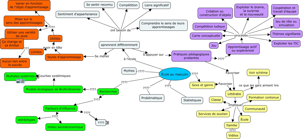 Cette carte de concepts créée avec IHMC CmapTools traite de: école au masculin, Modèle écologique de Brofenbrenner Couches systémiques exosystème, Famille ???? Vidéos, Apprentissage actif ou expérientiel procédés Jeu de rôle ou simulation, Utilités ???? Miser sur le sens des apprentissages, École au masculin ???? Recherches, Modèle écologique de Brofenbrenner Couches systémiques microsystème, Facteurs d'influence ???? sociocommunautaire, Littératie Impliquer École, Styles d'apprentissage avoir en tête Utilités, Pratiques pédagogiques probantes ???? Apprentissage actif ou expérientiel, École au masculin à l'école aprennent différemment, Limites ???? Ça change et ça évolue, Apprentissage actif ou expérientiel procédés Coopération et travail d'équipe, Modèle écologique de Brofenbrenner Couches systémiques mésosytème, Modèle écologique de Brofenbrenner Couches systémiques ontosystème, Sexe et genre Favoriser Littératie, aprennent différemment Se méfier Styles d'apprentissage, Littératie Impliquer Formation contonue, Pratiques pédagogiques probantes Favoriser Littératie, aprennent différemment ont besoin de Comprendre le sens de leurs apprentissages