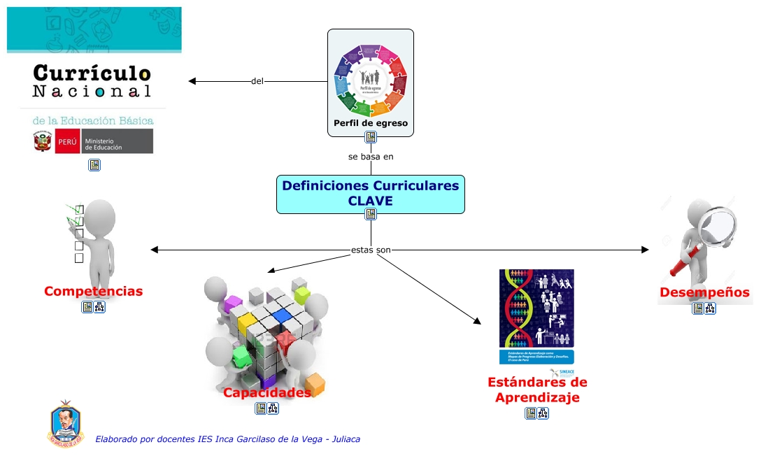 Este Cmap, tiene información relacionada con: Definiciones clave - perfil egreso, Definiciones Curriculares CLAVE estas son Capacidades, Definiciones Curriculares CLAVE estas son Desempeños, Perfil de egreso se basa en Definiciones Curriculares CLAVE, Definiciones Curriculares CLAVE estas son Competencias, Definiciones Curriculares CLAVE estas son Estándares de Aprendizaje, Perfil de egreso del