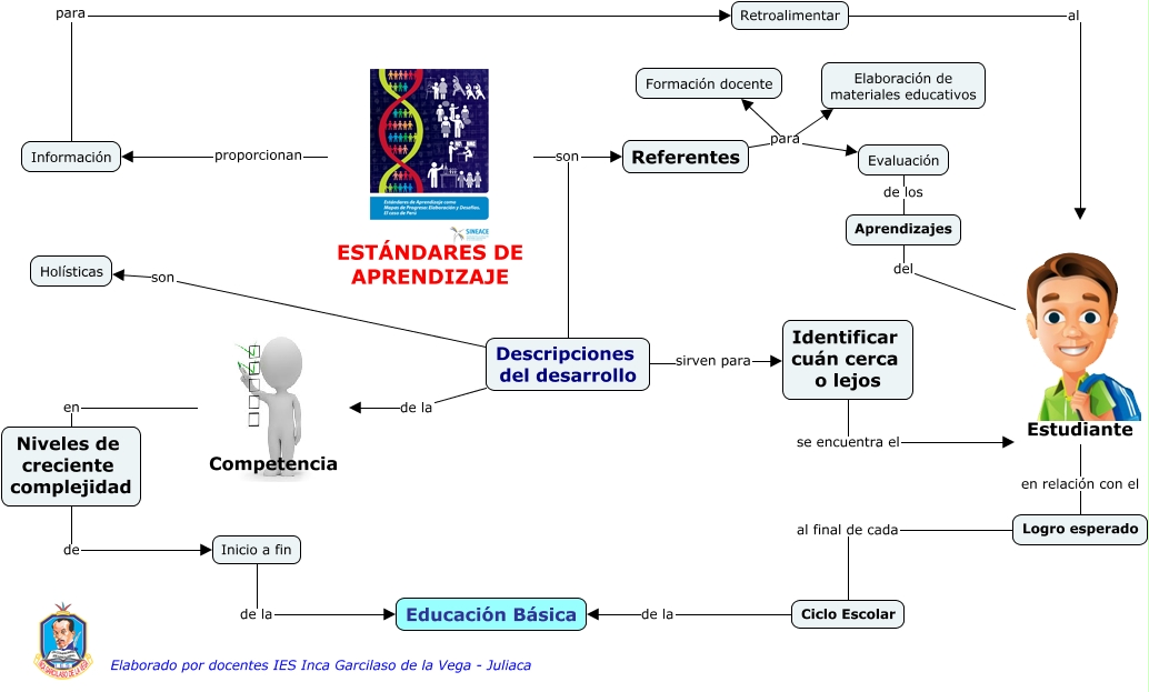 Este Cmap, tiene información relacionada con: Estandares de Aprendizaje, Referentes para Elaboración de materiales educativos, Aprendizajes del Estudiante, Ciclo Escolar de la Educación Básica, Identificar cuán cerca o lejos se encuentra el Estudiante, Inicio a fin de la Educación Básica, ESTÁNDARES DE APRENDIZAJE son Descripciones del desarrollo, Estudiante en relación con el Logro esperado, Descripciones del desarrollo sirven para Identificar cuán cerca o lejos, Retroalimentar al Estudiante, Referentes para Evaluación, Descripciones del desarrollo son Holísticas, Información para Retroalimentar, Referentes para Formación docente, ESTÁNDARES DE APRENDIZAJE son Referentes, Evaluación de los Aprendizajes, Descripciones del desarrollo de la Competencia, Niveles de creciente complejidad de Inicio a fin, ESTÁNDARES DE APRENDIZAJE proporcionan Información, Logro esperado al final de cada Ciclo Escolar, Competencia en Niveles de creciente complejidad