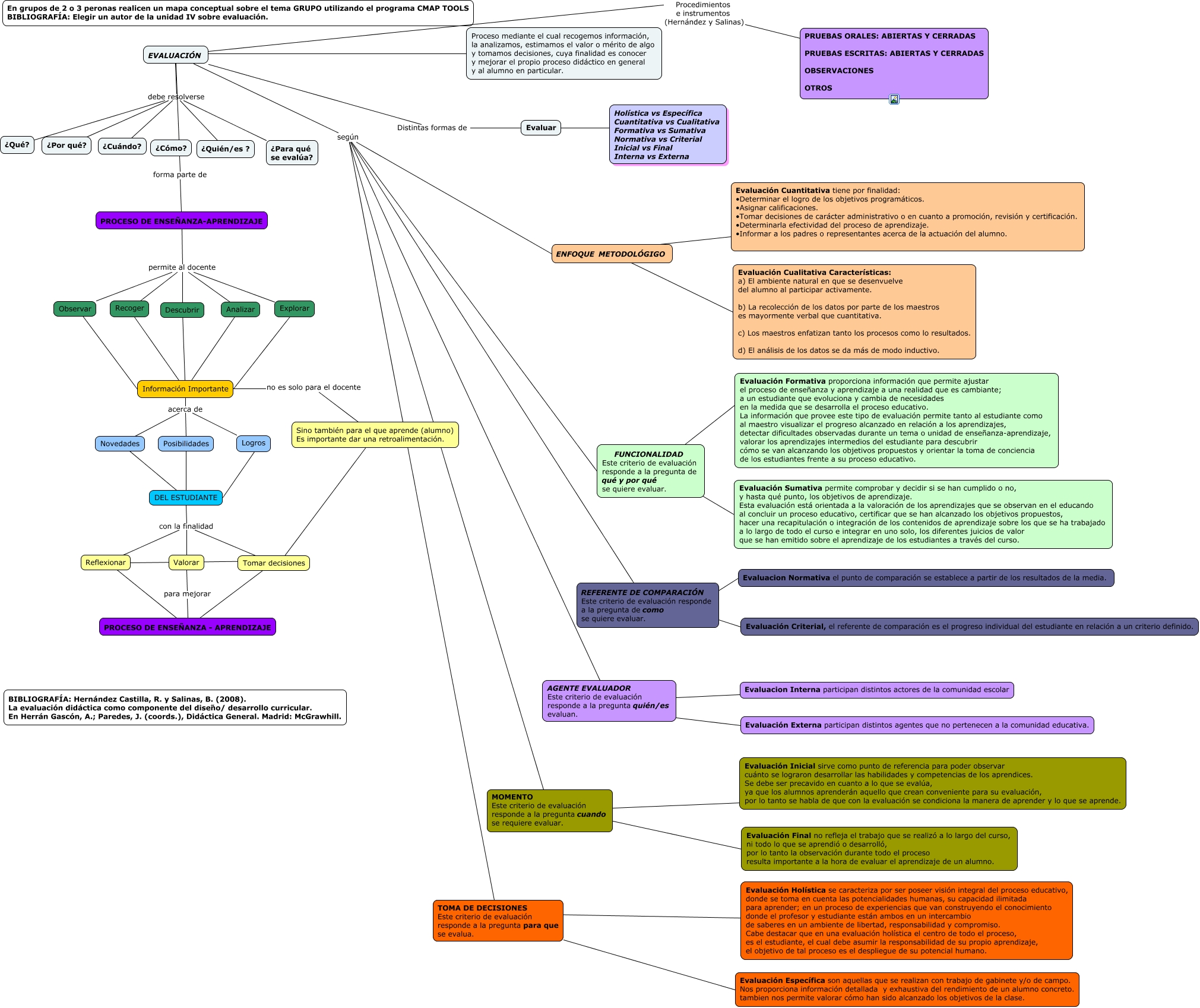 Este Cmap, tiene información relacionada con: EVALUACION DIDACTICA, PROCESO DE ENSEÑANZA-APRENDIZAJE permite al docente Observar, DEL ESTUDIANTE con la finalidad Tomar decisiones, Valorar para mejorar PROCESO DE ENSEÑANZA - APRENDIZAJE, Recoger ???? Información Importante, Información Importante acerca de Logros, EVALUACIÓN debe resolverse ¿Qué?, FUNCIONALIDAD Este criterio de evaluación responde a la pregunta de qué y por qué se quiere evaluar. ???? Evaluación Formativa proporciona información que permite ajustar el proceso de enseñanza y aprendizaje a una realidad que es cambiante; a un estudiante que evoluciona y cambia de necesidades en la medida que se desarrolla el proceso educativo. La información que provee este tipo de evaluación permite tanto al estudiante como al maestro visualizar el progreso alcanzado en relación a los aprendizajes, detectar dificultades observadas durante un tema o unidad de enseñanza-aprendizaje, valorar los aprendizajes intermedios del estudiante para descubrir cómo se van alcanzando los objetivos propuestos y orientar la toma de conciencia de los estudiantes frente a su proceso educativo., ENFOQUE METODOLÓGIGO ???? Evaluación Cualitativa Características: a) El ambiente natural en que se desenvuelve del alumno al participar activamente. b) La recolección de los datos por parte de los maestros es mayormente verbal que cuantitativa. c) Los maestros enfatizan tanto los procesos como lo resultados. d) El análisis de los datos se da más de modo inductivo., EVALUACIÓN según AGENTE EVALUADOR Este criterio de evaluación responde a la pregunta quién/es evaluan., MOMENTO Este criterio de evaluación responde a la pregunta cuando se requiere evaluar. ???? Evaluación Final no refleja el trabajo que se realizó a lo largo del curso, ni todo lo que se aprendió o desarrolló, por lo tanto la observación durante todo el proceso resulta importante a la hora de evaluar el aprendizaje de un alumno., Tomar decisiones ???? PROCESO DE ENSEÑANZA - APRENDIZAJE, DEL ESTUDIANTE con la finalidad Reflexionar, Información Importante acerca de Posibilidades, Observar ???? Información Importante, AGENTE EVALUADOR Este criterio de evaluación responde a la pregunta quién/es evaluan. ???? Evaluación Externa participan distintos agentes que no pertenecen a la comunidad educativa., AGENTE EVALUADOR Este criterio de evaluación responde a la pregunta quién/es evaluan. ???? Evaluacion Interna participan distintos actores de la comunidad escolar, TOMA DE DECISIONES Este criterio de evaluación responde a la pregunta para que se evalua. ???? Evaluación Holística se caracteriza por ser poseer visión integral del proceso educativo, donde se toma en cuenta las potencialidades humanas, su capacidad ilimitada para aprender; en un proceso de experiencias que van construyendo el conocimiento donde el profesor y estudiante están ambos en un intercambio de saberes en un ambiente de libertad, responsabilidad y compromiso. Cabe destacar que en una evaluación holística el centro de todo el proceso, es el estudiante, el cual debe asumir la responsabilidad de su propio aprendizaje, el objetivo de tal proceso es el despliegue de su potencial humano., Novedades ???? DEL ESTUDIANTE, FUNCIONALIDAD Este criterio de evaluación responde a la pregunta de qué y por qué se quiere evaluar. ???? Evaluación Sumativa permite comprobar y decidir si se han cumplido o no, y hasta qué punto, los objetivos de aprendizaje. Esta evaluación está orientada a la valoración de los aprendizajes que se observan en el educando al concluir un proceso educativo, certificar que se han alcanzado los objetivos propuestos, hacer una recapitulación o integración de los contenidos de aprendizaje sobre los que se ha trabajado a lo largo de todo el curso e integrar en uno solo, los diferentes juicios de valor que se han emitido sobre el aprendizaje de los estudiantes a través del curso., MOMENTO Este criterio de evaluación responde a la pregunta cuando se requiere evaluar. ???? Evaluación Inicial sirve como punto de referencia para poder observar cuánto se lograron desarrollar las habilidades y competencias de los aprendices. Se debe ser precavido en cuanto a lo que se evalúa, ya que los alumnos aprenderán aquello que crean conveniente para su evaluación, por lo tanto se habla de que con la evaluación se condiciona la manera de aprender y lo que se aprende.