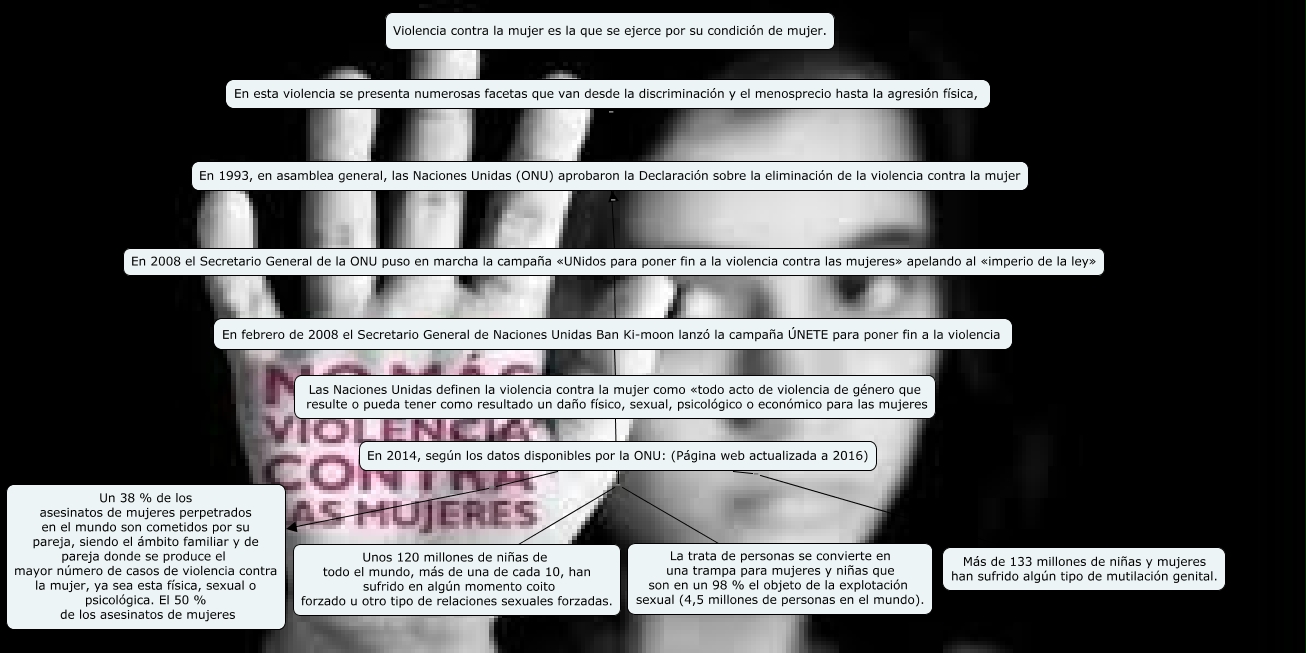 Este Cmap, tiene información relacionada con: kelvin, En 2008 el Secretario General de la ONU puso en marcha la campaña «UNidos para poner fin a la violencia contra las mujeres» apelando al «imperio de la ley» . En febrero de 2008 el Secretario General de Naciones Unidas Ban Ki-moon lanzó la campaña ÚNETE para poner fin a la violencia, Las Naciones Unidas definen la violencia contra la mujer como «todo acto de violencia de género que resulte o pueda tener como resultado un daño físico, sexual, psicológico o económico para las mujeres - En 2014, según los datos disponibles por la ONU: (Página web actualizada a 2016), En febrero de 2008 el Secretario General de Naciones Unidas Ban Ki-moon lanzó la campaña ÚNETE para poner fin a la violencia . Las Naciones Unidas definen la violencia contra la mujer como «todo acto de violencia de género que resulte o pueda tener como resultado un daño físico, sexual, psicológico o económico para las mujeres, Violencia contra la mujer es la que se ejerce por su condición de mujer. . En esta violencia se presenta numerosas facetas que van desde la discriminación y el menosprecio hasta la agresión física,, En esta violencia se presenta numerosas facetas que van desde la discriminación y el menosprecio hasta la agresión física, . En 1993, en asamblea general, las Naciones Unidas (ONU) aprobaron la Declaración sobre la eliminación de la violencia contra la mujer, En 2014, según los datos disponibles por la ONU: (Página web actualizada a 2016) . Un 38 % de los asesinatos de mujeres perpetrados en el mundo son cometidos por su pareja, siendo el ámbito familiar y de pareja donde se produce el mayor número de casos de violencia contra la mujer, ya sea esta física, sexual o psicológica. El 50 % de los asesinatos de mujeres, En 1993, en asamblea general, las Naciones Unidas (ONU) aprobaron la Declaración sobre la eliminación de la violencia contra la mujer . En 2008 el Secretario General de la ONU puso en marcha la campaña «UNidos para poner fin a la violencia contra las mujeres» apelando al «imperio de la ley», En 2014, según los datos disponibles por la ONU: (Página web actualizada a 2016) . Más de 133 millones de niñas y mujeres han sufrido algún tipo de mutilación genital., En 2014, según los datos disponibles por la ONU: (Página web actualizada a 2016) . La trata de personas se convierte en una trampa para mujeres y niñas que son en un 98 % el objeto de la explotación sexual (4,5 millones de personas en el mundo)., En 2014, según los datos disponibles por la ONU: (Página web actualizada a 2016) . Unos 120 millones de niñas de todo el mundo, más de una de cada 10, han sufrido en algún momento coito forzado u otro tipo de relaciones sexuales forzadas.