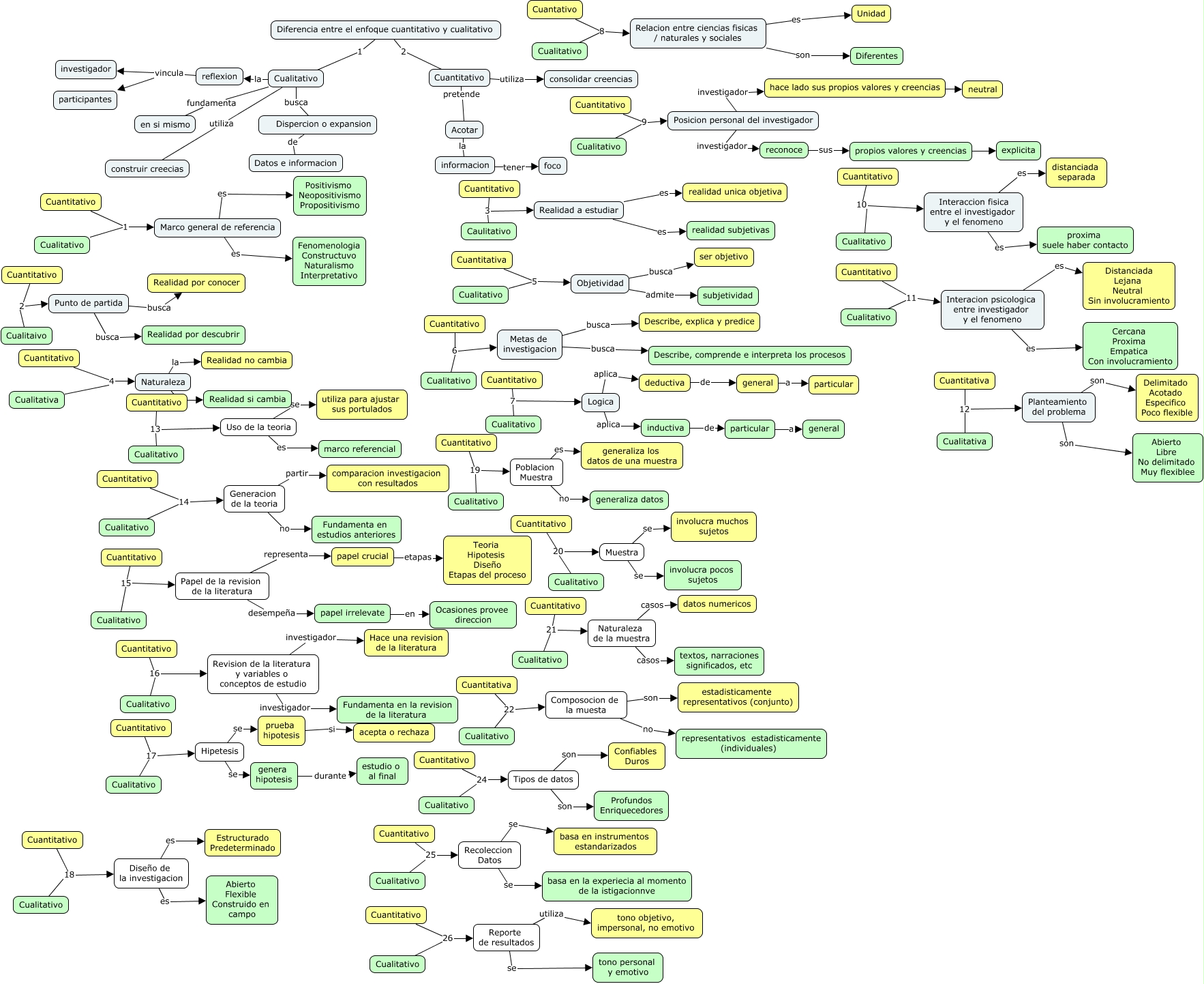 Este Cmap, tiene información relacionada con: capitulo 1, Diseño de la investigacion es Estructurado Predeterminado, Interaccion fisica entre el investigador y el fenomeno es proxima suele haber contacto, Realidad a estudiar es realidad unica objetiva, Interaccion fisica entre el investigador y el fenomeno es distanciada separada, Caulitativo 3 Realidad a estudiar, Cualitativo 14 Generacion de la teoria, Cuantitativo 18 Diseño de la investigacion, Cualitativo 5 Objetividad, Cuantitativa 22 Composocion de la muesta, Recoleccion Datos se basa en la experiecia al momento de la istigacionnve, Muestra se involucra pocos sujetos, Cualitaivo 2 Punto de partida, Cualitativo 7 Logica, Cuantitativo 4 Naturaleza, Cualitativo 20 Muestra, Punto de partida busca Realidad por conocer, Uso de la teoria es marco referencial, Diferencia entre el enfoque cuantitativo y cualitativo 1 Cualitativo, Cualitativa 12 Planteamiento del problema, hace lado sus propios valores y creencias ???? neutral