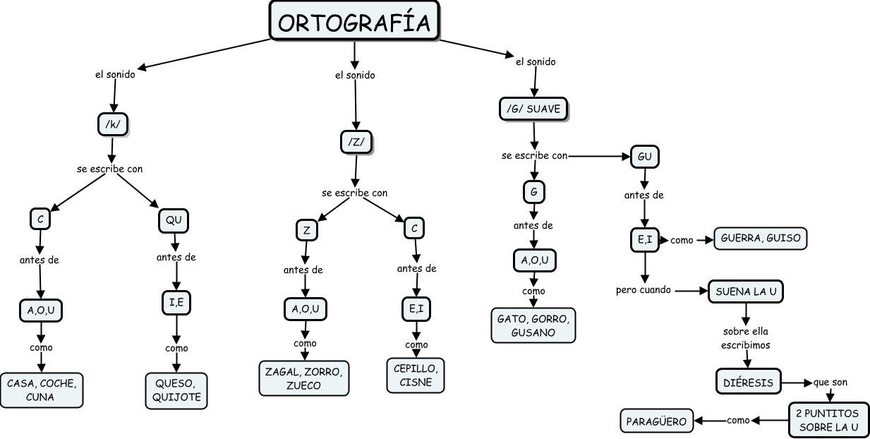 Este Cmap, tiene información relacionada con: ORTOGRAF�?A IMPRIMIR, I,E como QUESO, QUIJOTE, /G/ SUAVE se escribe con GU, A,O,U como GATO, GORRO, GUSANO, /k/ se escribe con C, 2 PUNTITOS SOBRE LA U como PARAGÜERO, Z antes de A,O,U, A,O,U como ZAGAL, ZORRO, ZUECO, /G/ SUAVE se escribe con G, /Z/ se escribe con C, C antes de E,I, /k/ se escribe con QU, C antes de A,O,U, G antes de A,O,U, ORTOGRAF�?A el sonido /Z/, ORTOGRAF�?A el sonido /k/, /Z/ se escribe con Z, DIÉRESIS que son 2 PUNTITOS SOBRE LA U, SUENA LA U sobre ella escribimos DIÉRESIS, QU antes de I,E, E,I como CEPILLO, CISNE