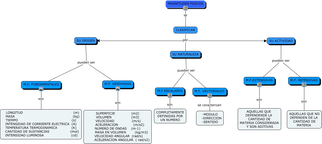 Este Cmap, tiene información relacionada con: CLASIFICACION DE MAGNITUDES FISICAS, SU ORIGEN pueden ser M.F. FUNDAMENTALES, M.F.EXTENSIVAS son AQUELLAS QUE DEPENDENDE LA CANTIDAD DE MATERIA CONSIDERADA Y SON ADITIVAS, SU ACTIVIDAD pueden ser M.F.EXTENSIVAS, M.F ESCALARES son COMPLETAMENTE DEFINIDAS POR UN NUMERO, SU NATURALEZA pueden ser M.F ESCALARES, M.F. VECTORIALES se caracterizan -MODULO -DIRECCION -SENTIDO, M.F. INTENSIVAS son AQUELLAS QUE NO DEPENDEN DE LA CANTIDAD DE MATERIA, M.F. FUNDAMENTALES son LONGITUD (m) MASA (kg) TIEMPO (s) INTENSIDAD DE CORRIENTE ELECTRICA (A) TEMPERATURA TERMODINAMICA (K) CANTIDAD DE SUSTANCIAS (mol) INTENSIDAD LUMINOSA (cd), SU ACTIVIDAD pueden ser M.F. INTENSIVAS, CLASIFICAN por SU ACTIVIDAD, CLASIFICAN por SU NATURALEZA, CLASIFICAN por SU ORIGEN, SU NATURALEZA pueden ser M.F. VECTORIALES, SU ORIGEN pueden ser M.F. DERIVADAS, MAGNITUDES FISICAS se CLASIFICAN, M.F. DERIVADAS son SUPERFICIE (m2) VOLUMEN (m3) VELOCIDAD (m/s) ACELERACION (m/s2) NUMERO DE ONDAS (m-1) MASA EN VOLUMEN (kg/m3) VELOCIDAD ANGULAR (rad/s) ACELERACION ANGULAR ( rad/s2)