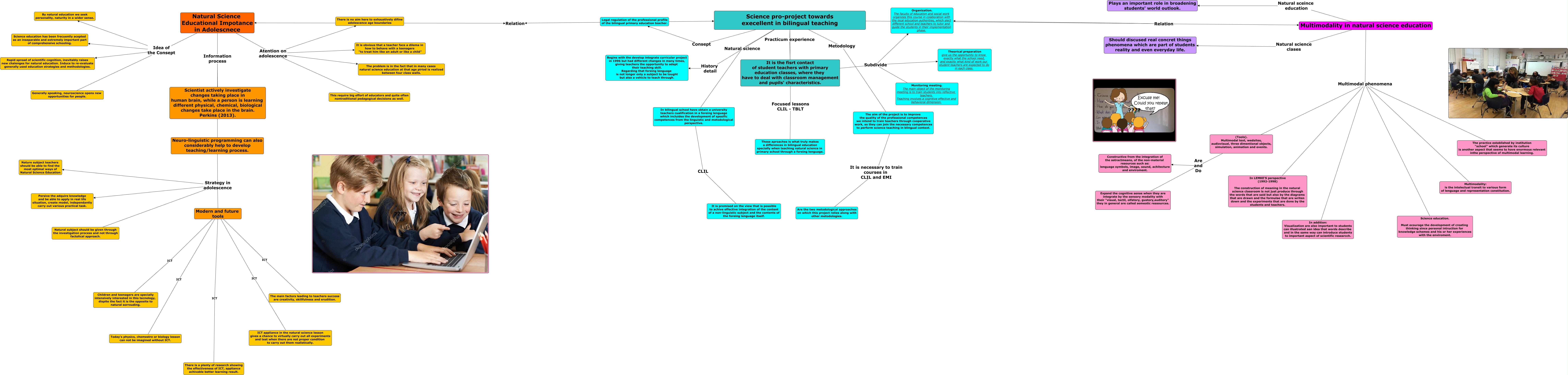 Este Cmap, tiene información relacionada con: Cmap didactics2, Multimodality in natural science education Multimodal phenomena In LEMKE'S perspective (1992-1998) The construction of meaning in the natural science classroom is not just produce through the words that are said but also by the diagrams that are drawn and the formulae that are writen down and the experiments that are done by the students and teachers., The aim of the project is to improve the quality of the professional competences we intend to train teachers through cooperative work, so they can join the necessary competences to perform science teaching in blingual context. It is necessary to train courses in CLIL and EMI Are the two metodological approaches on which this project relies along with other metodologies., Neuro-linguistic programming can also considerably help to develop teaching/learning process. Strategy in adolescence Natural subject should be given through the investigation process and not through factolical approach., Natural Science Educational Impotance in Adolescnece Idea of the Consept Science education has been frecuently acepted as an inseparable and extremely important part of comprehensive schooling., Natural Science Educational Impotance in Adolescnece Atention on adolescence It is obvious that a teacher face a dilema in how to behave with a teenagers "to treat him like an adult or like a child", Natural Science Educational Impotance in Adolescnece Idea of the Consept Generally speaking, neuroscience opens new opportunities for people., Modern and future tools ICT ICT appliance in the natural science lesson gives a chance to virtually carry out all experiments and test when there are not proper condition to carry out them realistically., Science pro-project towards execellent in bilingual teaching Practicum experience It is the fisrt contact of student teachers with primary education classes, where they have to deal with classroom management and pupils' characteristics., Science pro-project towards execellent in bilingual teaching Relation Multimodality in natural science education, Natural Science Educational Impotance in Adolescnece Idea of the Consept By natural education we seek personality, naturity in a wider sense., Natural Science Educational Impotance in Adolescnece Relation Science pro-project towards execellent in bilingual teaching, Neuro-linguistic programming can also considerably help to develop teaching/learning process. Strategy in adolescence Nature subject teachers should be able to find the most optimal ways of Natural Science Education, Modern and future tools ICT There is a plenty of research showing the effectiveness of ICT, appliance achivable better learning result., Science pro-project towards execellent in bilingual teaching Natural science In bilingual school have obtain a university teachers cualification in a foreing lenguage which incluides the development of spesific competences from the linguistic and metodological perspective., Science pro-project towards execellent in bilingual teaching History detail Begins with the develop integrate curricular project in 1996 but had different changes in many times, giving teachers the opportunity to adapt their teaching skill. Regarding that foreing lenguage is not longer only a subject to be tought but also a vehicle to teach through., (Tools). Multimodal text, wedsites, audiovisual, three dimentional objects, simulation, animation and events. Are and Do Constructive from the integration of the astractmeans, of the non-material resources such as: lenguage symbols, image, sound, achitecture and enviroment., It is the fisrt contact of student teachers with primary education classes, where they have to deal with classroom management and pupils' characteristics. Subdivide Organization. The faculty of education and social work organizes this course in colaboration with the local education authorities, which slect different school and teachers to tutor and guide the students in their implementation phase., Science pro-project towards execellent in bilingual teaching Metodology The aim of the project is to improve the quality of the professional competences we intend to train teachers through cooperative work, so they can join the necessary competences to perform science teaching in blingual context., Natural Science Educational Impotance in Adolescnece Idea of the Consept Rapid spread of scientific cognition, inevitably raises new chalenges for natural education. Induce to re-evaluate generally used education strategies and methodologies., Multimodality in natural science education Natural science clases Should discused real concret things phenomena which are part of students reality and even everyday life.