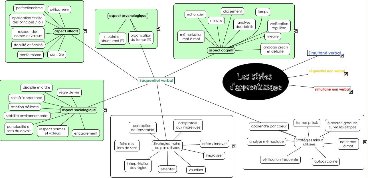 Cette carte de concepts créée avec IHMC CmapTools traite de: Les styles d'apprentissage - Séquentiel verbal, Séquentiel verbal aspect affectif application stricite des principes / lois, Séquentiel verbal Stratégies mieux utilisées noter mot à mot, Séquentiel verbal aspect sociologique attetion délicate, Séquentiel verbal Stratégies moins ou pas utilisées visualiser, Séquentiel verbal aspect cognitif échancier, Séquentiel verbal aspect affectif contrôle, Séquentiel verbal aspect sociologique disciplie et ordre, Séquentiel verbal aspect cognitif vérification régulière, Séquentiel verbal aspect affectif perfectionnisme, Séquentiel verbal aspect sociologique ponctualité et sens du devoir, Séquentiel verbal aspect cognitif linéaire, Séquentiel verbal Stratégies moins ou pas utilisées essentiel, Les styles d'apprentissage ???? simultané non verbal, Simultané verbal ???? Les styles d'apprentissage, Séquentiel verbal Stratégies moins ou pas utilisées interprétation des règles, Séquentiel verbal aspect cognitif langage précis et détaillé, Séquentiel verbal aspect affectif conformisme, Séquentiel verbal aspect cognitif mémorisation mot à mot, Séquentiel verbal aspect cognitif minutie, Séquentiel verbal Stratégies moins ou pas utilisées improviser