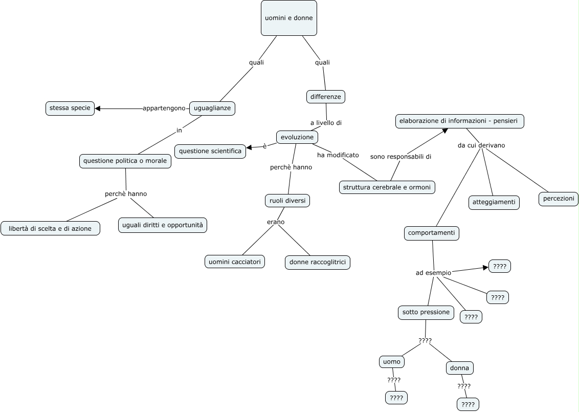 Questa Cmap, creata con IHMC CmapTools, contiene informazioni relative a: Uomini e donne_2, elaborazione di informazioni - pensieri da cui derivano comportamenti, uomini e donne quali differenze, donna ???? ????, questione politica o morale perchè hanno libertà di scelta e di azione, ruoli diversi erano donne raccoglitrici, sotto pressione ???? uomo, comportamenti ad esempio ????, ruoli diversi erano uomini cacciatori, evoluzione ha modificato struttura cerebrale e ormoni, uguaglianze in questione politica o morale, elaborazione di informazioni - pensieri da cui derivano percezioni, comportamenti ad esempio sotto pressione, elaborazione di informazioni - pensieri da cui derivano atteggiamenti, uomini e donne quali uguaglianze, sotto pressione ???? donna, comportamenti ad esempio ????, evoluzione è questione scientifica, uguaglianze appartengono stessa specie, questione politica o morale perchè hanno uguali diritti e opportunità, differenze a livello di evoluzione