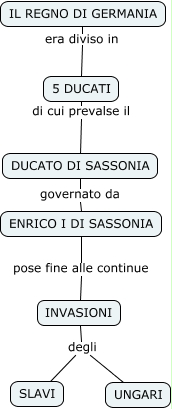 Questa Cmap, creata con IHMC CmapTools, contiene informazioni relative a: storia cedrone, IL REGNO DI GERMANIA era diviso in 5 DUCATI, INVASIONI degli UNGARI, INVASIONI degli SLAVI, DUCATO DI SASSONIA governato da ENRICO I DI SASSONIA, ENRICO I DI SASSONIA pose fine alle continue INVASIONI, 5 DUCATI di cui prevalse il DUCATO DI SASSONIA