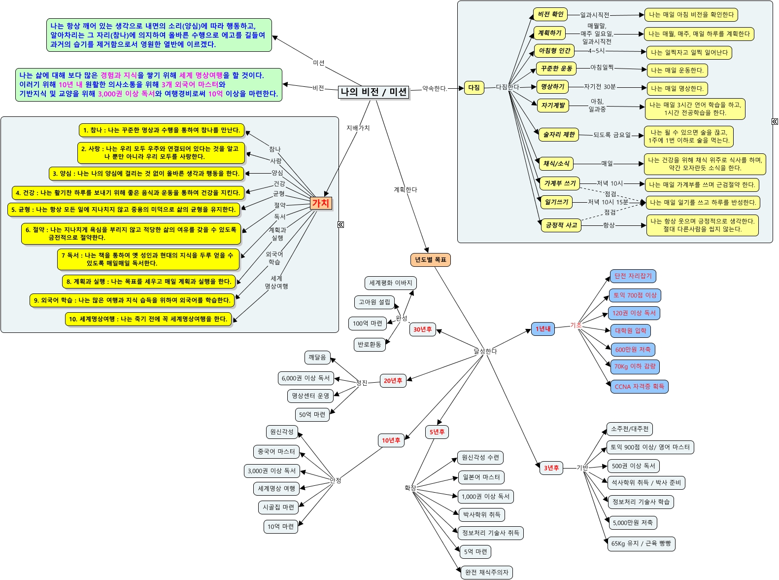 This Concept Map, created with IHMC CmapTools, has information related to: ?�의 미션 �?비전_150101.cmap, 1?�내 기초 ?�익 700???�상, 10?�후 ?�정 중국??마스?? 5?�후 ?�장 ?�신각성 ?�련, �?�� 건강 4. 건강 : ?�는 ?�기�??�루�?보내�??�해 좋�? ?�식�??�동???�하??건강??�?��??, ?�짐 ?�짐?�다 ?�침???�간, ?�도�?목표 ?�성?�다 10?�후, ?�의 비전 / 미션 미션 ?�는 ??�� 깨어 ?�는 ?�각?�로 ?�면???�리(?�심)???�라 ?�동?�고, ?�아차리??�??�리(참나)???��??�여 ?�바�??�행?�로 ?�고�?길들??과거???�기�??�거?�으로서 ?�원???�반???�르겠다., ?�짐 ?�짐?�다 계획?�기, �?�� ?�심 3. ?�심 : ?�는 ?�의 ?�심??걸리??�??�이 ?�바�??�각�??�동???�다., 1?�내 기초 CCNA ?�격�??�득, 1?�내 기초 600만원 ??��, 10?�후 ?�정 ?�계명상 ?�행, ?�의 비전 / 미션 비전 ?�는 ?�에 ??�� 보다 많�? 경험�?�?��???�기 ?�해 ?�계 명상?�행????것이?? ?�러�??�해 10?????�활???�사?�통???�해 3�??�국??마스?��? 기반�?�� �?교양???�해 3,000�??�상 ?�서???�행경비로써 10???�상??마련?�다., ?�짐 ?�짐?�다 ?�자�??�한, 10?�후 ?�정 10??마련, 1?�내 기초 ?�전 ?�리?�기, ?�짐 ?�짐?�다 �?���??�기, ?�도�?목표 ?�성?�다 3?�후, �?���??�기 ??�� 10???�는 매일 �?���?? ?�며 근�??�약 ?�다., ?�짐 ?�짐?�다 ?�기계발