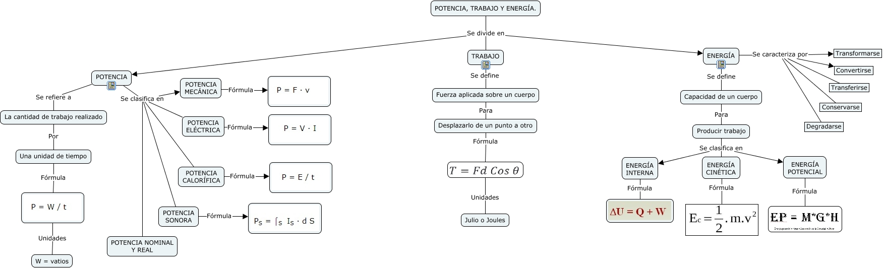 Este Cmap, tiene información relacionada con: MAPA CONCEPTUAL DE TRABAJO, POTENCIA Y ENERGIA ZAIRA, POTENCIA Se clasifica en POTENCIA MECÁNICA, POTENCIA Se clasifica en POTENCIA NOMINAL Y REAL, ENERGÍA Se caracteriza por Transferirse, Producir trabajo Se clasifica en ENERGÍA POTENCIAL, POTENCIA, TRABAJO Y ENERGÍA. Se divide en POTENCIA, POTENCIA, TRABAJO Y ENERGÍA. Se divide en ENERGÍA, POTENCIA Se refiere a La cantidad de trabajo realizado, POTENCIA Se clasifica en POTENCIA SONORA, ENERGÍA CINÉTICA Fórmula, Una unidad de tiempo Fórmula, ENERGÍA Se caracteriza por Transformarse, ENERGÍA Se caracteriza por Convertirse, Desplazarlo de un punto a otro Fórmula, ENERGÍA Se caracteriza por Degradarse, ENERGÍA Se define Capacidad de un cuerpo, Producir trabajo Se clasifica en ENERGÍA CINÉTICA, POTENCIA Se clasifica en POTENCIA ELÉCTRICA, Unidades W = vatios, ENERGÍA INTERNA Fórmula, POTENCIA ELÉCTRICA Fórmula