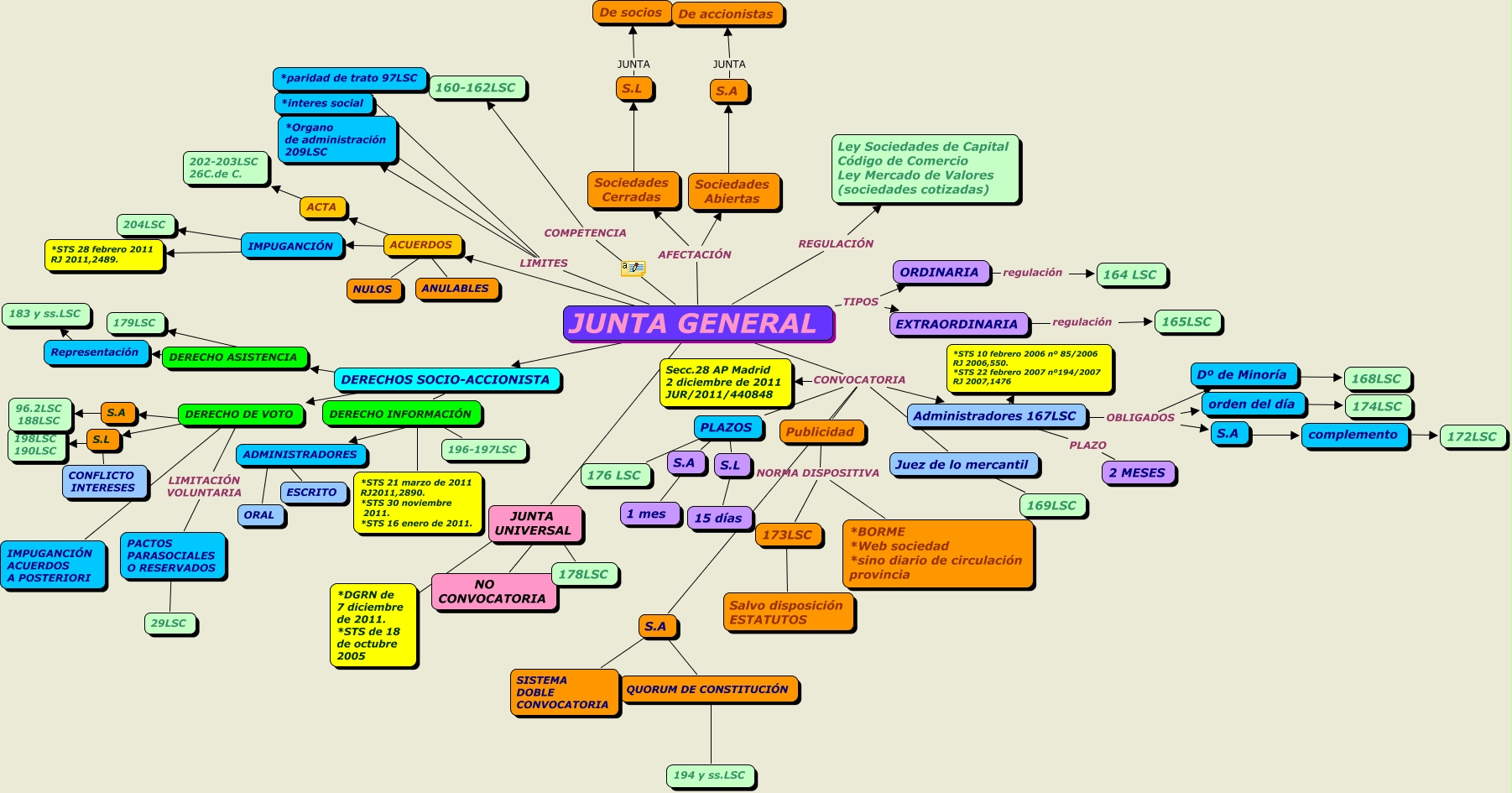 Este Cmap, tiene información relacionada con: SOCIEDADES 4, JUNTA GENERAL CONVOCATORIA PLAZOS, ACUERDOS ???? NULOS, JUNTA GENERAL CONVOCATORIA Juez de lo mercantil, S.A JUNTA De accionistas, Dº de Minoría ???? 168LSC, PLAZOS ???? 176 LSC, DERECHO DE VOTO ???? IMPUGANCIÓN ACUERDOS A POSTERIORI, orden del día ???? 174LSC, ADMINISTRADORES ???? ESCRITO, ORDINARIA regulación 164 LSC, JUNTA GENERAL CONVOCATORIA Secc.28 AP Madrid 2 diciembre de 2011 JUR/2011/440848, Juez de lo mercantil ???? 169LSC, PACTOS PARASOCIALES O RESERVADOS ???? 29LSC, JUNTA GENERAL LIMITES *interes social, Administradores 167LSC OBLIGADOS orden del día, S.L ???? 15 días, JUNTA GENERAL ???? ACUERDOS, JUNTA GENERAL LIMITES *paridad de trato 97LSC, DERECHO DE VOTO LIMITACIÓN VOLUNTARIA PACTOS PARASOCIALES O RESERVADOS, JUNTA GENERAL CONVOCATORIA S.A