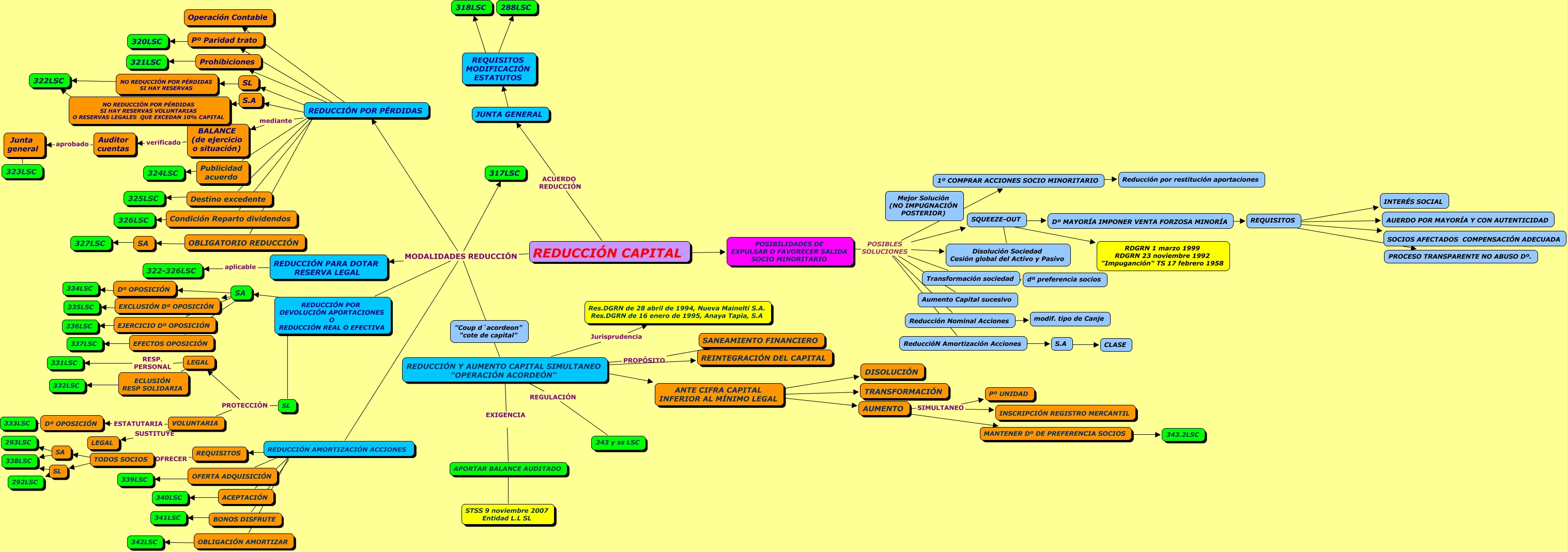 Este Cmap, tiene información relacionada con: SOCIEDADES 10, REQUISITOS OFRECER TODOS SOCIOS, REDUCCIÓN Y AUMENTO CAPITAL SIMULTANEO "OPERACIÓN ACORDEÓN" REGULACIÓN 343 y ss LSC, TODOS SOCIOS ???? SA, Auditor cuentas aprobado Junta general, Reducción Nominal Acciones ???? modif. tipo de Canje, REDUCCIÓN PARA DOTAR RESERVA LEGAL aplicable 322-326LSC, ANTE CIFRA CAPITAL INFERIOR AL MÍNIMO LEGAL ???? TRANSFORMACIÓN, REDUCCIÓN AMORTIZACIÓN ACCIONES ???? OFERTA ADQUISICIÓN, SA ???? EFECTOS OPOSICIÓN, VOLUNTARIA SUSTITUYE LEGAL, POSIBILIDADES DE EXPULSAR O FAVORECER SALIDA SOCIO MINORITARIO POSIBLES SOLUCIONES 1º COMPRAR ACCIONES SOCIO MINORITARIO, BALANCE (de ejercicio o situación) verificado Auditor cuentas, BONOS DISFRUTE ???? 341LSC, SL PROTECCIÓN VOLUNTARIA, REDUCCIÓN CAPITAL MODALIDADES REDUCCIÓN REDUCCIÓN Y AUMENTO CAPITAL SIMULTANEO "OPERACIÓN ACORDEÓN", SL ???? NO REDUCCIÓN POR PÉRDIDAS SI HAY RESERVAS, SL PROTECCIÓN LEGAL, REQUISITOS ???? SOCIOS AFECTADOS COMPENSACIÓN ADECUADA, SQUEEZE-OUT ???? Dº MAYORÍA IMPONER VENTA FORZOSA MINORÍA, SQUEEZE-OUT ???? Disolución Sociedad Cesión global del Activo y Pasivo