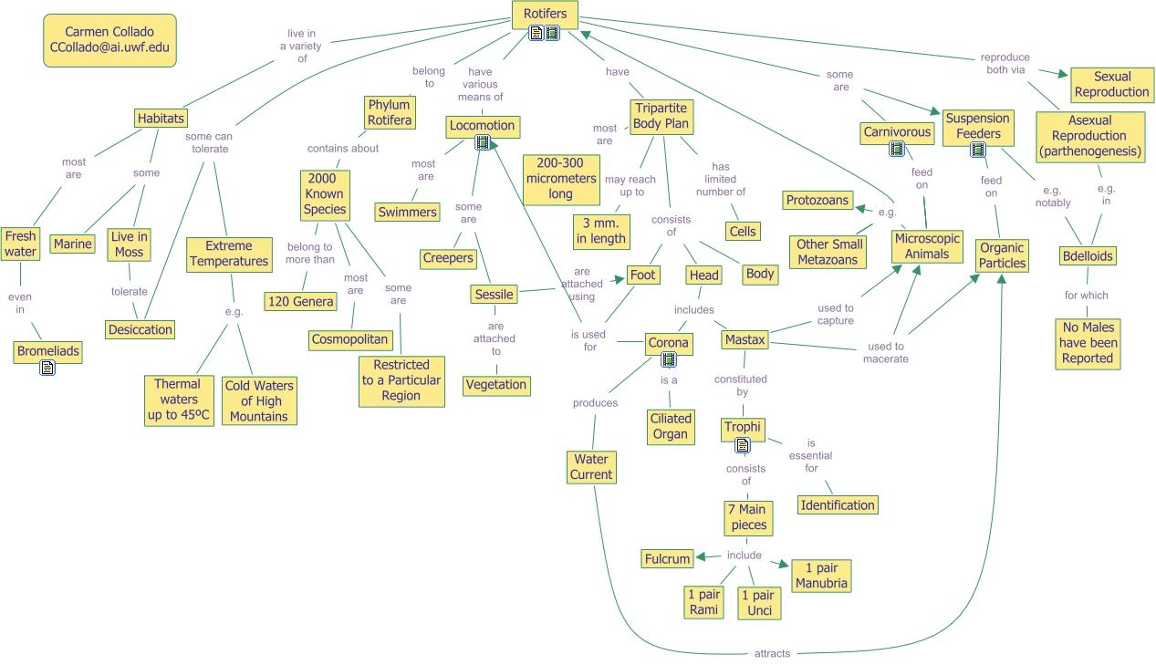Rotifera - English, Rotifers belong to Phylum Rotifera, Rotifers reproduce both via Asexual Reproduction (parthenogenesis), 2000 Known Species belong to more than 120 Genera, 2000 Known Species some are Restricted to a Particular Region, 7 Main pieces include 1 pair Rami, Head includes Corona, Carnivorous feed on Microscopic Animals, Locomotion most are Swimmers, Tripartite Body Plan has limited number of Cells, Carnivorous feed on Microscopic Animals