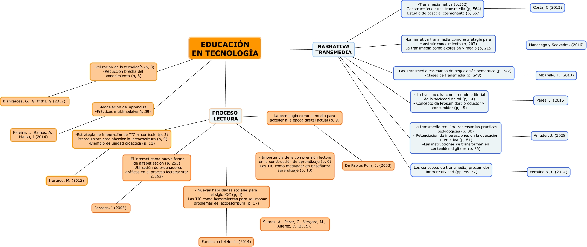 Este Cmap, tiene información relacionada con: Educación en tecnología 2, NARRATIVA TRANSMEDIA -Transmedia nativa (p,562) - Construcción de una transmedia (p, 564) - Estudio de caso: el cosmonauta (p, 567), NARRATIVA TRANSMEDIA - Las Transmedia escenarios de negociación semántica (p, 247) -Clases de transmedia (p, 248), PROCESO LECTURA -Estrategia de integración de TIC al currículo (p, 3) -Prerequisitos para abordar la lectoescritura (p, 9) -Ejemplo de unidad didáctica (p, 11), PROCESO LECTURA - Nuevas habilidades sociales para el siglo XXI (p, 4) -Las TIC como herramientas para solucionar problemas de lectoescrfitura (p, 17), - La transmedika como mundo editorial de la sociedad dijital (p, 14) - Concepto de Prosumidor: productor y consumidor (p, 15) Pérez, J. (2016), -Estrategia de integración de TIC al currículo (p, 3) -Prerequisitos para abordar la lectoescritura (p, 9) -Ejemplo de unidad didáctica (p, 11) Hurtado, M. (2012), EDUCACIÓN EN TECNOLOGÍA PROCESO LECTURA, -La transmedia requiere repensar las prácticas pedagógicas (p, 80) - Potenciación de interacciones en la educación interactiva (p, 81) -Las instrucciones se transforman en contenidos digitales (p, 86) Amador, J. (2028, - Las Transmedia escenarios de negociación semántica (p, 247) -Clases de transmedia (p, 248) Albarello, F. (2013), NARRATIVA TRANSMEDIA -La narrativa transmedia como estrfategia para construir conocimiento (p, 207) -La transmedia como expresión y medio (p, 215), EDUCACIÓN EN TECNOLOGÍA -Modelación del aprendiza -Prácticas multimodales (p,39), -El internet como nueva forma de alfabetización (p, 255) - Utilización de ordenadores gráficos en el proceso lectoescritor (p,263) Paredes, J (2005), PROCESO LECTURA - Importancia de la comprensión lectora en la construcción de aprendizaje (p, 9) -Las TIC como motivador en enseñanza aprendizaje (p, 10), NARRATIVA TRANSMEDIA -La transmedia requiere repensar las prácticas pedagógicas (p, 80) - Potenciación de interacciones en la educación interactiva (p, 81) -Las instrucciones se transforman en contenidos digitales (p, 86), PROCESO LECTURA La tecnología como el medio para acceder a la epoca digital actual (p, 9), - Importancia de la comprensión lectora en la construcción de aprendizaje (p, 9) -Las TIC como motivador en enseñanza aprendizaje (p, 10) Suarez, A., Perez, C., Vergara, M., Alferez, V. (2015)., PROCESO LECTURA -El internet como nueva forma de alfabetización (p, 255) - Utilización de ordenadores gráficos en el proceso lectoescritor (p,263), -Transmedia nativa (p,562) - Construcción de una transmedia (p, 564) - Estudio de caso: el cosmonauta (p, 567) Costa, C (2013), -La narrativa transmedia como estrfategia para construir conocimiento (p, 207) -La transmedia como expresión y medio (p, 215) Manchego y Saavedra. (2016), Los conceptos de transmedia, prosumidor intercreatividad (pp, 56, 57) Fernández, C (2014)