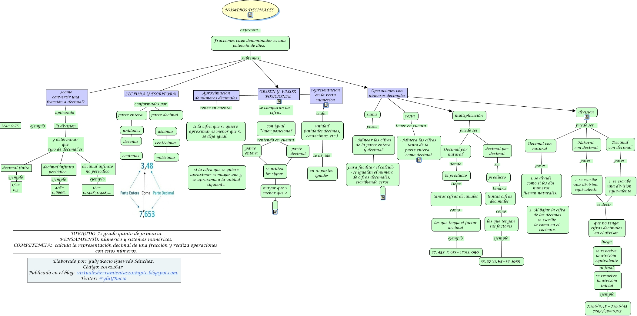 Este Cmap, tiene información relacionada con: decimales, LECTURA Y ESCRITURA conformados por parte decimal, para facilitar el cálculo. - se igualan el número de cifras decimales, escribiendo ceros ????, con igual Valor posicional teniendo en cuenta parte decimal, decenas ???? centenas, parte entera ???? se utiliza los signos, Decimal por natural donde El producto, 1. se escribe una division equivalente es decir que no tenga cifras decimales en el divisor, Operaciones con números decimales ???? suma, ¿cómo convertir una fracción a decimal? aplicando la división, unidad (unidades,décimas, centécimas, etc.) se divide en 10 partes iguales, decimal por decimal su producto, decimal infinito periódico ejemplo 4/6= 0,6666.., producto tendra tantas cifras decimales, división puede ser Natural con decimal, multiplicación puede ser Decimal por natural, tantas cifras decimales como las que tenga el factor decimal, resta tener en cuenta - Alinera las cifras tanto de la parte entera como decimal, suma pasos - Alinear las cifras de la parte entera y decimal, tantas cifras decimales como las que tengan sus factores, Natural con decimal pasos 1. se escribe una division equivalente