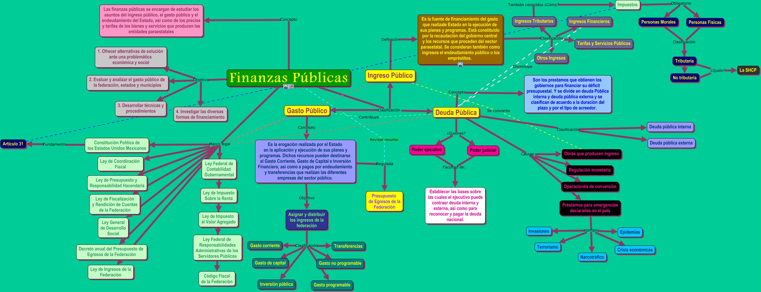 Este Cmap, tiene información relacionada con: Finanzas Públicas, Deuda Pública Marco legal Ley de Coordinación Fiscal, Deuda Pública Marco legal Ley de Impuesto al Valor Agregado, Deuda Pública Concepto Son los prestamos que obtienen los gobiernos para financiar su déficit presupuestal. Y se divide en deuda Pública interna y deuda pública externa y se clasifican de acuerdo a la duración del plazo y por el tipo de acreedor., Gasto Público Marco legal Ley General de Desarrollo Social, Tributaria ¿Quién? La SHCP, Gasto Público Marco legal Decreto anual del Presupuesto de Egresos de la Federación, Préstamos para emergencias declaradas en el país ejemplo Terrorismo, Deuda Pública Marco legal Ley Federal de Responsabilidades Administrativas de los Servidores Públicos, Gasto Público Contribuye Deuda Pública, Asignar y distribuir los ingresos de la federación Clasificación Gasto de capital, Deuda Pública Marco legal Código Fiscal de la Federación, Es la fuente de financiamiento del gasto que realízale Estado en la ejecución de sus planes y programas. Está constituido por la recaudación del gobierno central y los recursos que proceden del sector paraestatal. Se consideran también como ingresos el endeudamiento público o los empréstitos. Clasificación Ingresos Financieros, Asignar y distribuir los ingresos de la federación Clasificación Gasto corriente, Deuda Pública Marco legal Ley General de Desarrollo Social, Deuda Pública Marco legal Decreto anual del Presupuesto de Egresos de la Federación, Finanzas Públicas Marco legal Ley de Coordinación Fiscal, Préstamos para emergencias declaradas en el país ejemplo Invasiones, Gasto Público Marco legal Ley de Coordinación Fiscal, Personas Morales Clasificación Tributaria, Gasto Público Marco legal Código Fiscal de la Federación