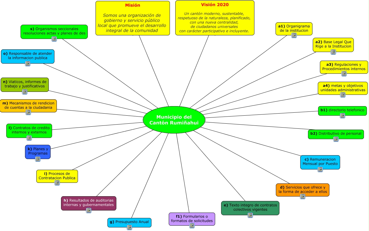 Este Cmap, tiene información relacionada con: Municipio de Rumiñahui, Municipio del Cantón Rumiñahui ???? a3) Regulaciones y Procedimientos internos, Municipio del Cantón Rumiñahui ???? b2) Distributivo de personal, Municipio del Cantón Rumiñahui ???? n) Viaticos, informes de trabajo y justificativos, Municipio del Cantón Rumiñahui ???? m) Mecanismos de rendicion de cuentas a la ciudadania, Municipio del Cantón Rumiñahui ???? e) Texto integro de contratos colectivos vigentes, Municipio del Cantón Rumiñahui ???? s) Organismos seccionales resoluciones actas y planes de des, Municipio del Cantón Rumiñahui ???? g) Presupuesto Anual, Municipio del Cantón Rumiñahui ???? o) Responsable de atender la informacion publica, Municipio del Cantón Rumiñahui ???? a2) Base Legal Que Rige a la Institucion, Municipio del Cantón Rumiñahui ???? c) Remuneracion Mensual por Puesto, Municipio del Cantón Rumiñahui ???? a1) Organigrama de la institucion, Municipio del Cantón Rumiñahui ???? l) Contratos de credito internos y externos, Municipio del Cantón Rumiñahui ???? b1) directorio telefonico, Municipio del Cantón Rumiñahui ???? k) Planes y Programas, Municipio del Cantón Rumiñahui ???? Misión Somos una organización de gobierno y servicio público local que promueve el desarrollo integral de la comunidad, Municipio del Cantón Rumiñahui ???? a4) metas y objetivos unidades administrativas, Municipio del Cantón Rumiñahui ???? i) Procesos de Contratacion Publica, Municipio del Cantón Rumiñahui ???? f1) Formularios o formatos de solicitudes, Municipio del Cantón Rumiñahui ???? Visión 2020 Un cantón moderno, sustentable, respetuoso de la naturaleza, planificado, con una nueva centralidad, de ciudadanos universales con carácter participativo e incluyente., Municipio del Cantón Rumiñahui ???? h) Resultados de auditorias internas y gubernamentales