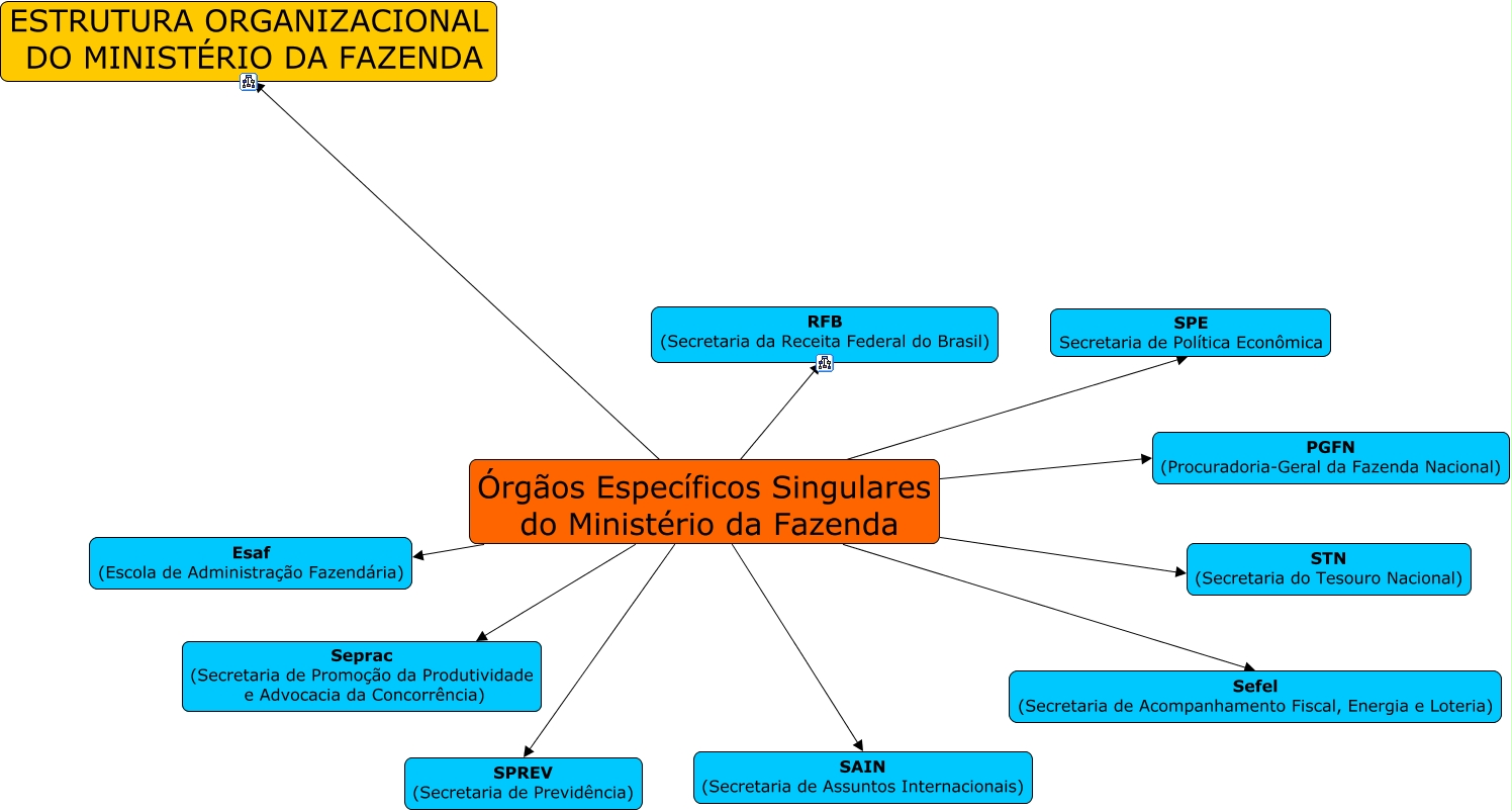 Esse mapa conceitual, produzido no IHMC CmapTools, tem a informação relacionada a: Min. da Faz. - Órgãos Específicos Singulares, Órgãos Específicos Singulares do Ministério da Fazenda Esaf (Escola de Administração Fazendária), Órgãos Específicos Singulares do Ministério da Fazenda SAIN (Secretaria de Assuntos Internacionais), Órgãos Específicos Singulares do Ministério da Fazenda PGFN (Procuradoria-Geral da Fazenda Nacional), Órgãos Específicos Singulares do Ministério da Fazenda SPREV (Secretaria de Previdência), Órgãos Específicos Singulares do Ministério da Fazenda RFB (Secretaria da Receita Federal do Brasil), Órgãos Específicos Singulares do Ministério da Fazenda ESTRUTURA ORGANIZACIONAL DO MINISTÉRIO DA FAZENDA, Órgãos Específicos Singulares do Ministério da Fazenda STN (Secretaria do Tesouro Nacional), Órgãos Específicos Singulares do Ministério da Fazenda Sefel (Secretaria de Acompanhamento Fiscal, Energia e Loteria), Órgãos Específicos Singulares do Ministério da Fazenda SPE Secretaria de Política Econômica, Órgãos Específicos Singulares do Ministério da Fazenda Seprac (Secretaria de Promoção da Produtividade e Advocacia da Concorrência)