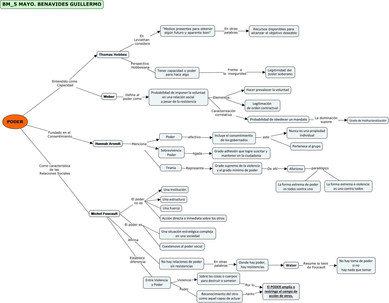 Este Cmap, tiene información relacionada con: 1. Presentacion Poder, Probabilidad de imponer la voluntad en una relación social a pesar de la resistencia Elementos Legitimación de orden contractual, Michel Foucault El poder es Una situación estratégica compleja en una sociedad, Probabilidad de imponer la voluntad en una relación social a pesar de la resistencia Caracterización correlativa Probabilidad de obedecer un mandato, Michel Foucault Establece diferencia Entre Violencia y Poder, Probabilidad de imponer la voluntad en una relación social a pesar de la resistencia Elementos Hacer prevalecer la voluntad, Donde hay poder, hay resistencias Walzer, PODER Fundado en el Consentimiento Hannah Arendt, PODER Entendido como Capacidad Thomas Hobbes, Grado supremo de la violencia y el grado mínimo de poder De ahí Aforismo, Sobrevivencia Poder ligada Grado adhesión que logre suscitar y mantener en la ciudadanía, Tiranía Representa Grado supremo de la violencia y el grado mínimo de poder, Walzer Resume la tesis de Foucault No hay toma de poder si no hay nada que tomar, PODER Como característica de las Relaciones Sociales Michel Foucault, Tener capacidad o poder para hace algo Frente a la inseguridad Legitimidad del poder soberano, Michel Foucault El poder no es Una Fuerza, Aforismo paradógico La forma extrema e violencia es uno contra todos, Michel Foucault Afirma No hay relaciones de poder sin resistencias, Incluye el consentimiento de los gobernados este Nunca es una propiedad individual, Aforismo paradógico La forma extrema de poder es todos contra uno, Michel Foucault El poder no es Una Institución