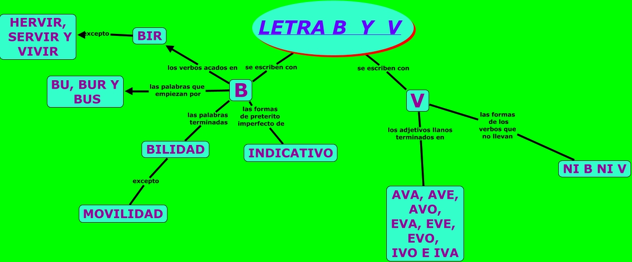 Este Cmap, tiene información relacionada con: ABEL 123, BIR excepto HERVIR, SERVIR Y VIVIR, B las palabras que empiezan por BU, BUR Y BUS, V los adjetivos llanos terminados en AVA, AVE, AVO, EVA, EVE, EVO, IVO E IVA, V las formas de los verbos que no llevan NI B NI V, LETRA B Y V se escriben con V, B las formas de preterito imperfecto de INDICATIVO, B los verbos acados en BIR, LETRA B Y V se escriben con B, B las palabras terminadas BILIDAD, BILIDAD excepto MOVILIDAD