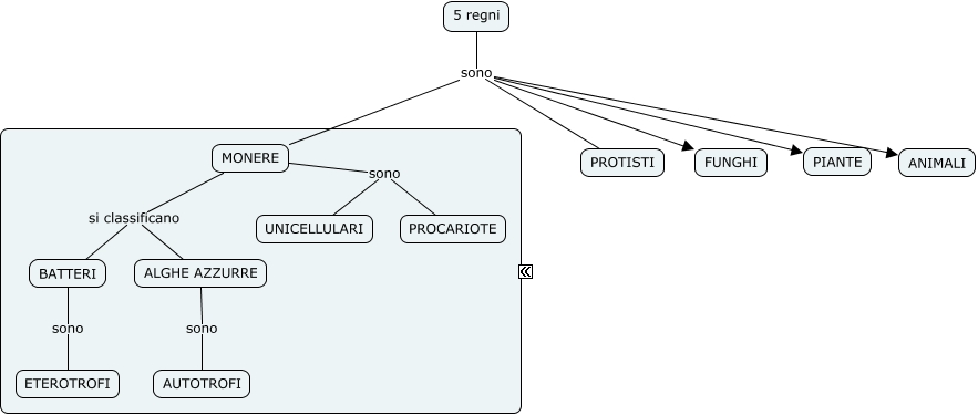 Questa Cmap, creata con IHMC CmapTools, contiene informazioni relative a: I CINQUE REGNI, MONERE sono PROCARIOTE, MONERE si classificano ALGHE AZZURRE, 5 regni sono ANIMALI, 5 regni sono PIANTE, 5 regni sono MONERE, BATTERI sono ETEROTROFI, 5 regni sono PROTISTI, MONERE si classificano BATTERI, MONERE sono UNICELLULARI, ALGHE AZZURRE sono AUTOTROFI, 5 regni sono FUNGHI